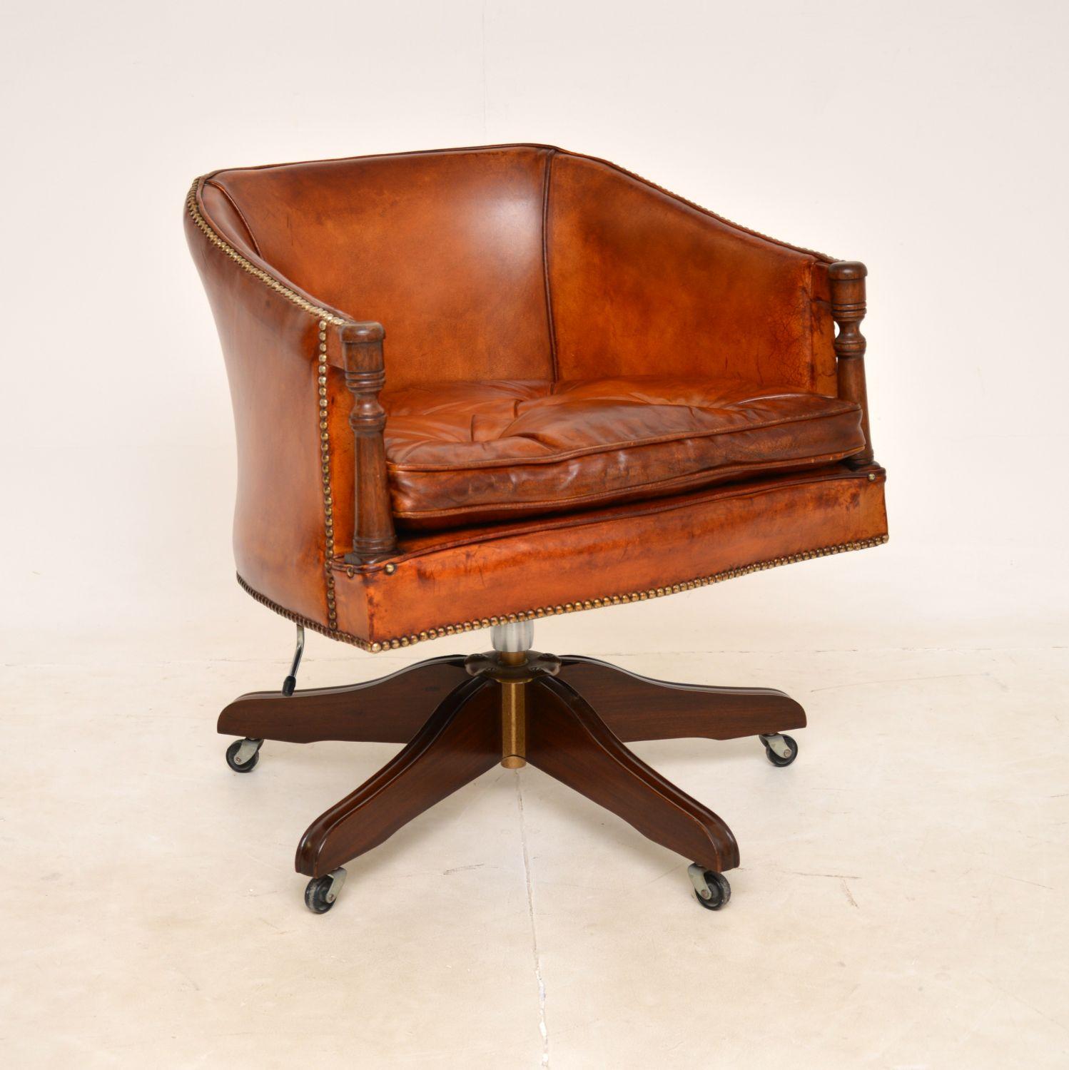 Georgian Style Leather & Mahogany Swivel Desk Chair