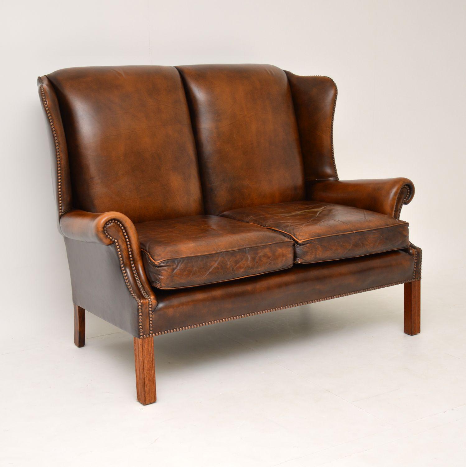 Georgian Style Leather Wing Back Sofa c.1960
