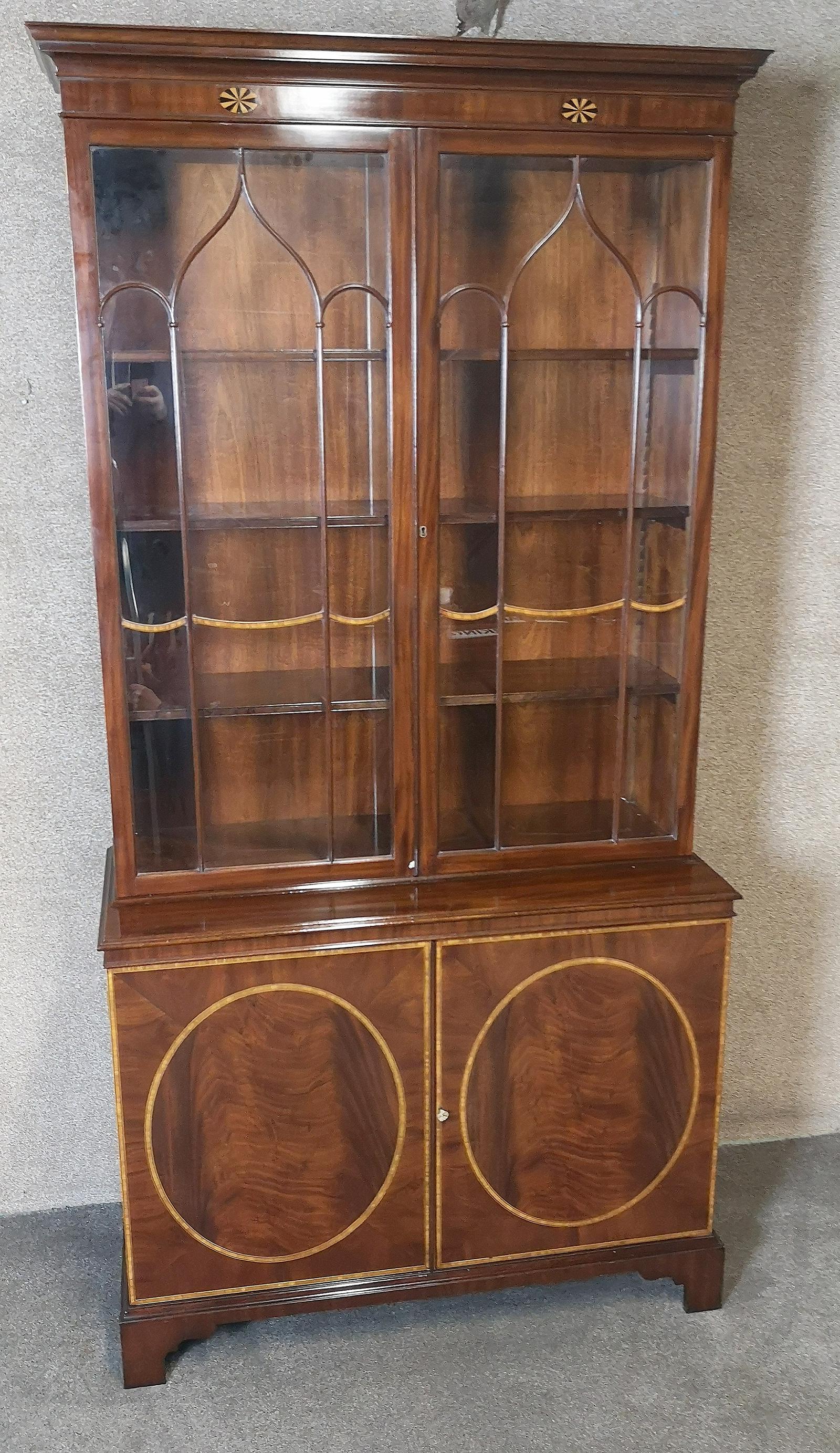 Georgian Style Mahogany and Satinwood Banded Bookcase (1 of 10)