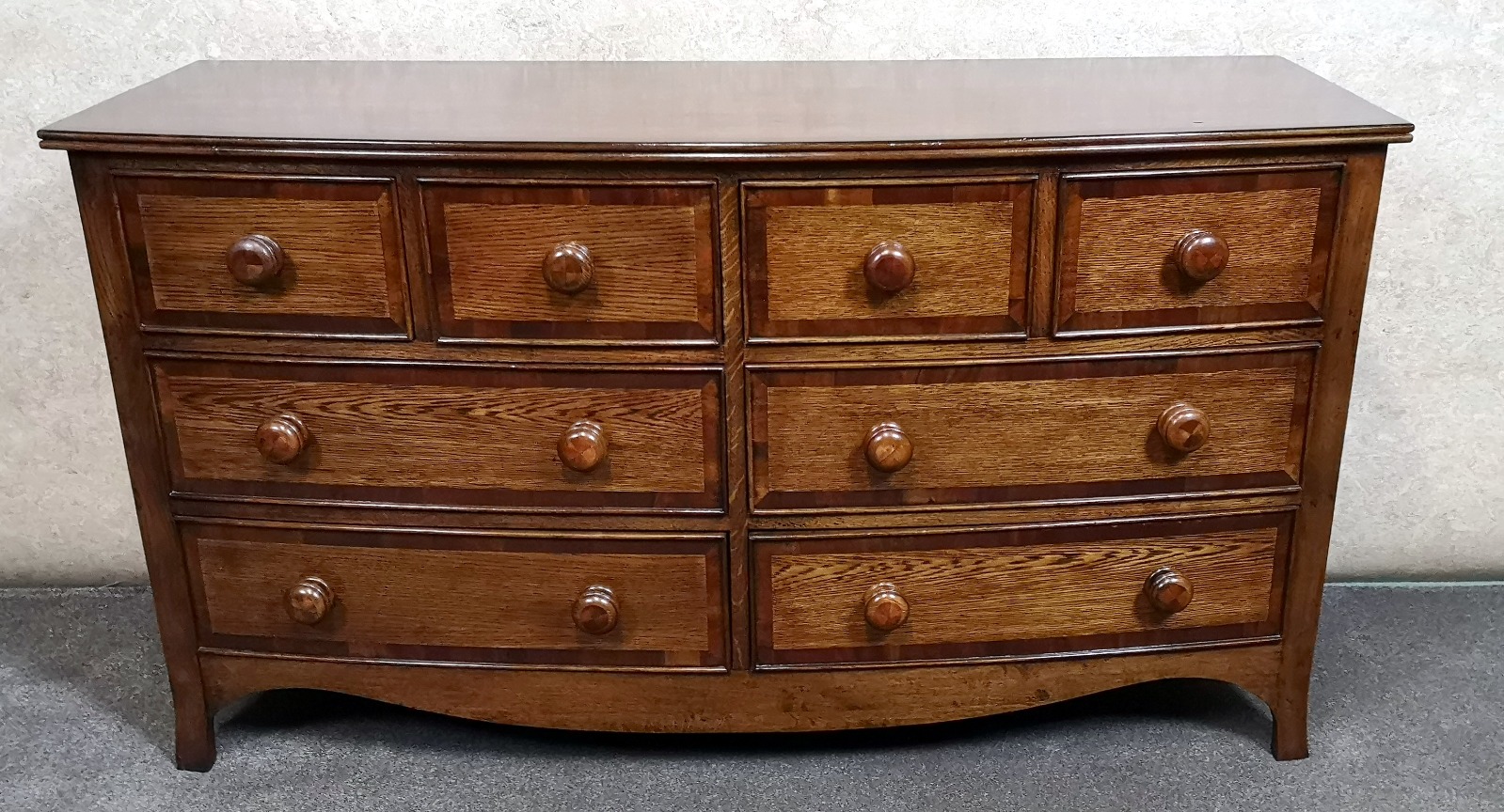 Georgian Style Oak & Mahogany Bow Fronted Chest of Drawers