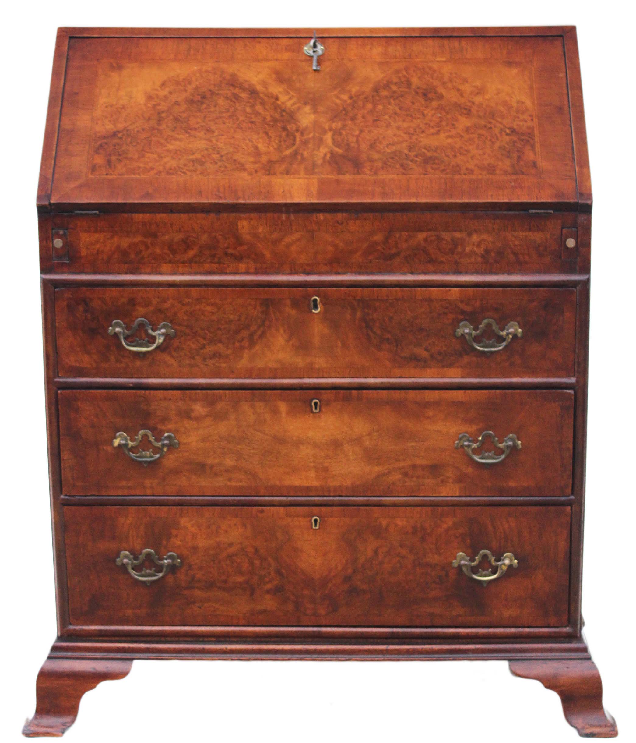 Georgian Style Revival Burr Walnut Bureau / Writing Desk / Writing Table