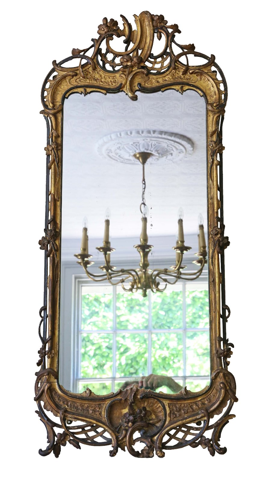 Georgian Tall Ebonised & Gilt Hall Wall Mirror C.1800
