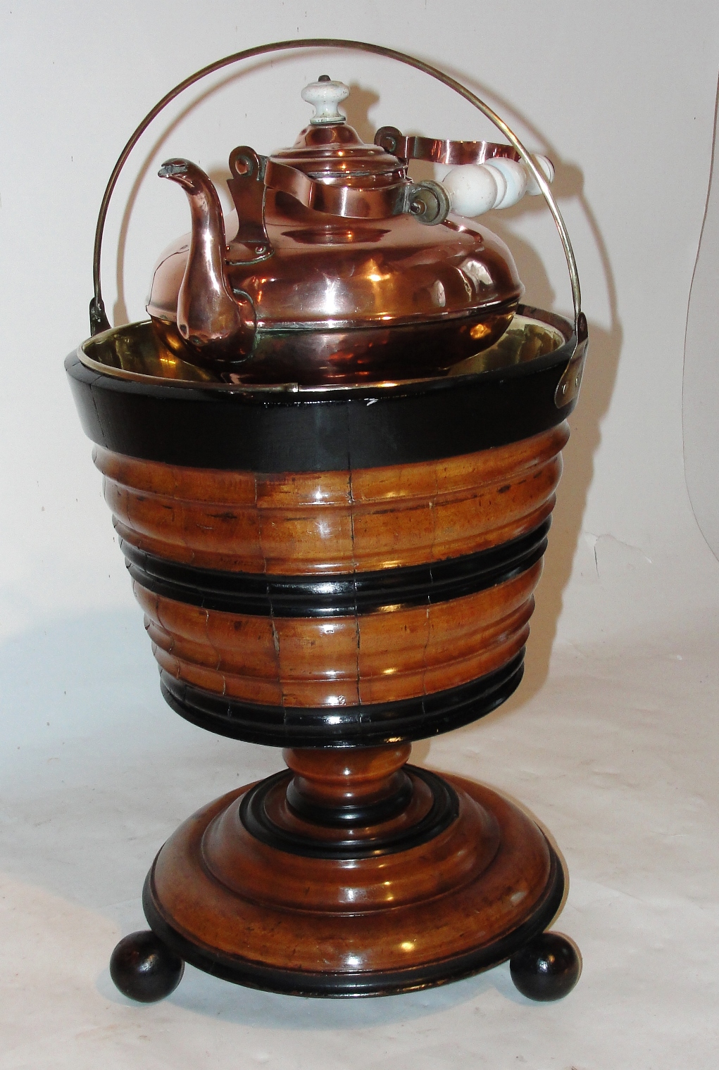 Georgian Turned & Coopered Fruitwood Tea Bucket with Kettle