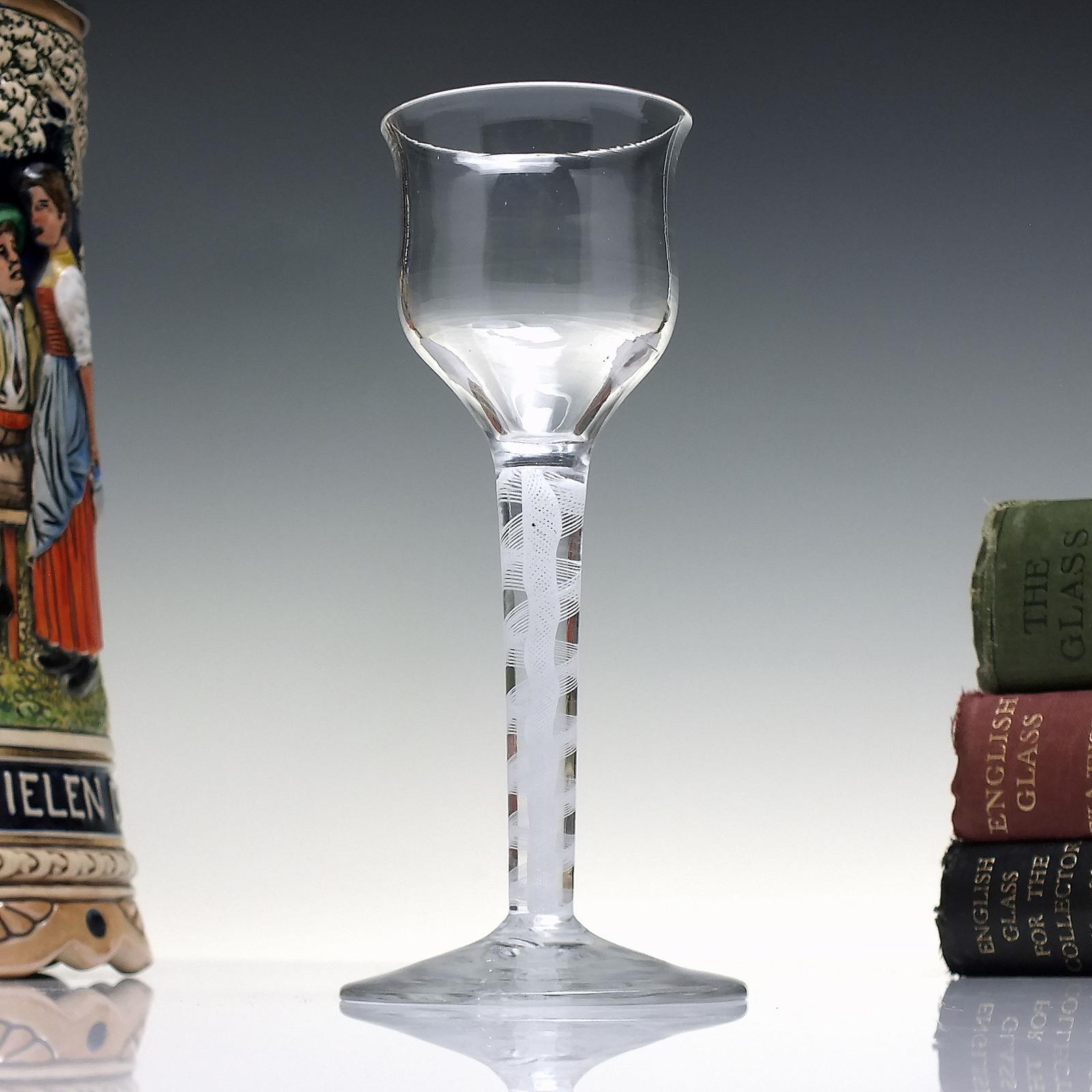 Georgian Waisted Ogee Bowl Opaque Twist Wine Glass c.1760