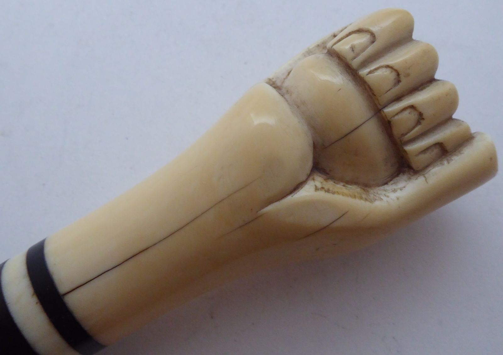 Georgian Walking Stick Cane Ivory Rosewood Horn
