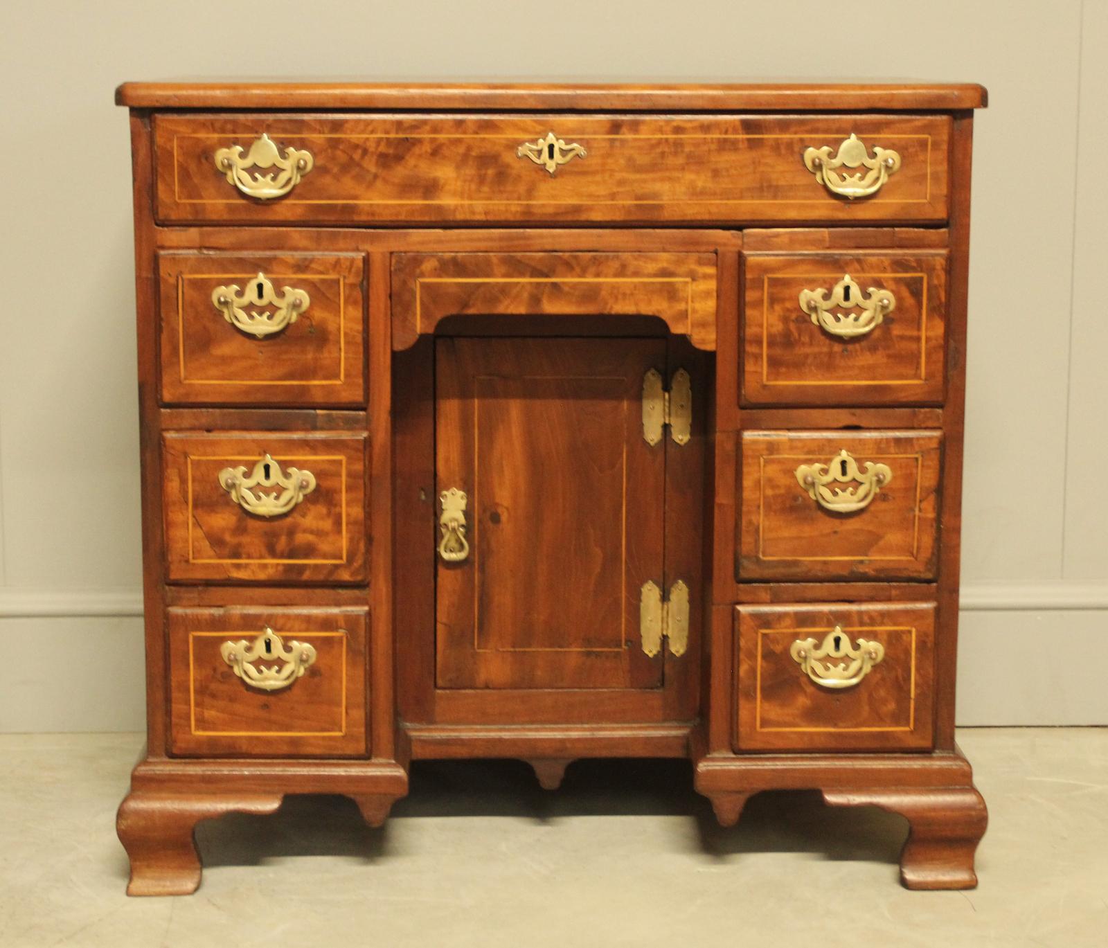 Georgian Walnut White Lined Kneehole Desk