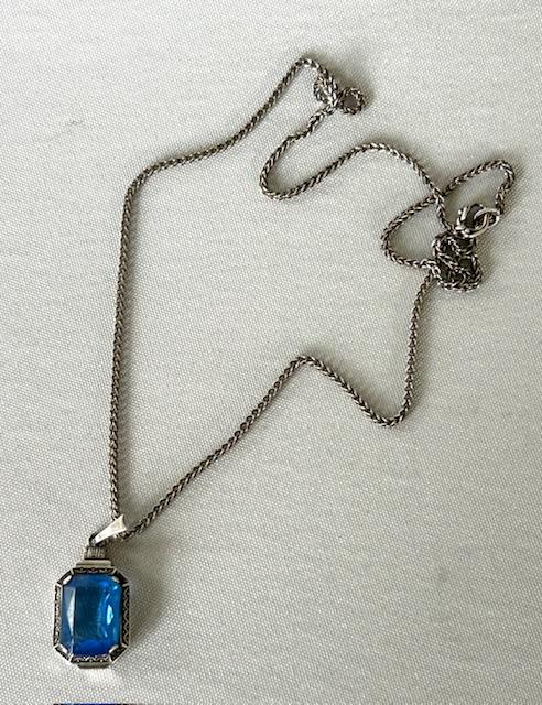 German Art Deco Silver & Blue Glass Pendant Necklace