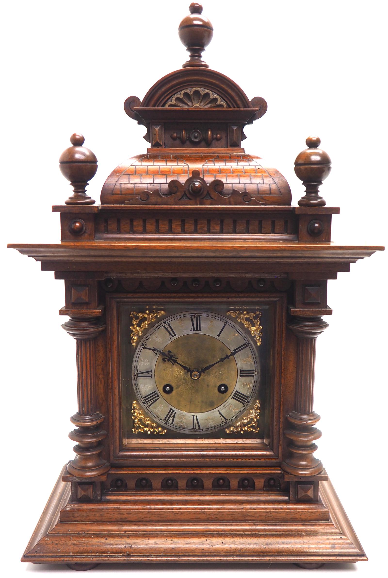 German Carved-Oak 8-Day Mantel Clock by Junghans