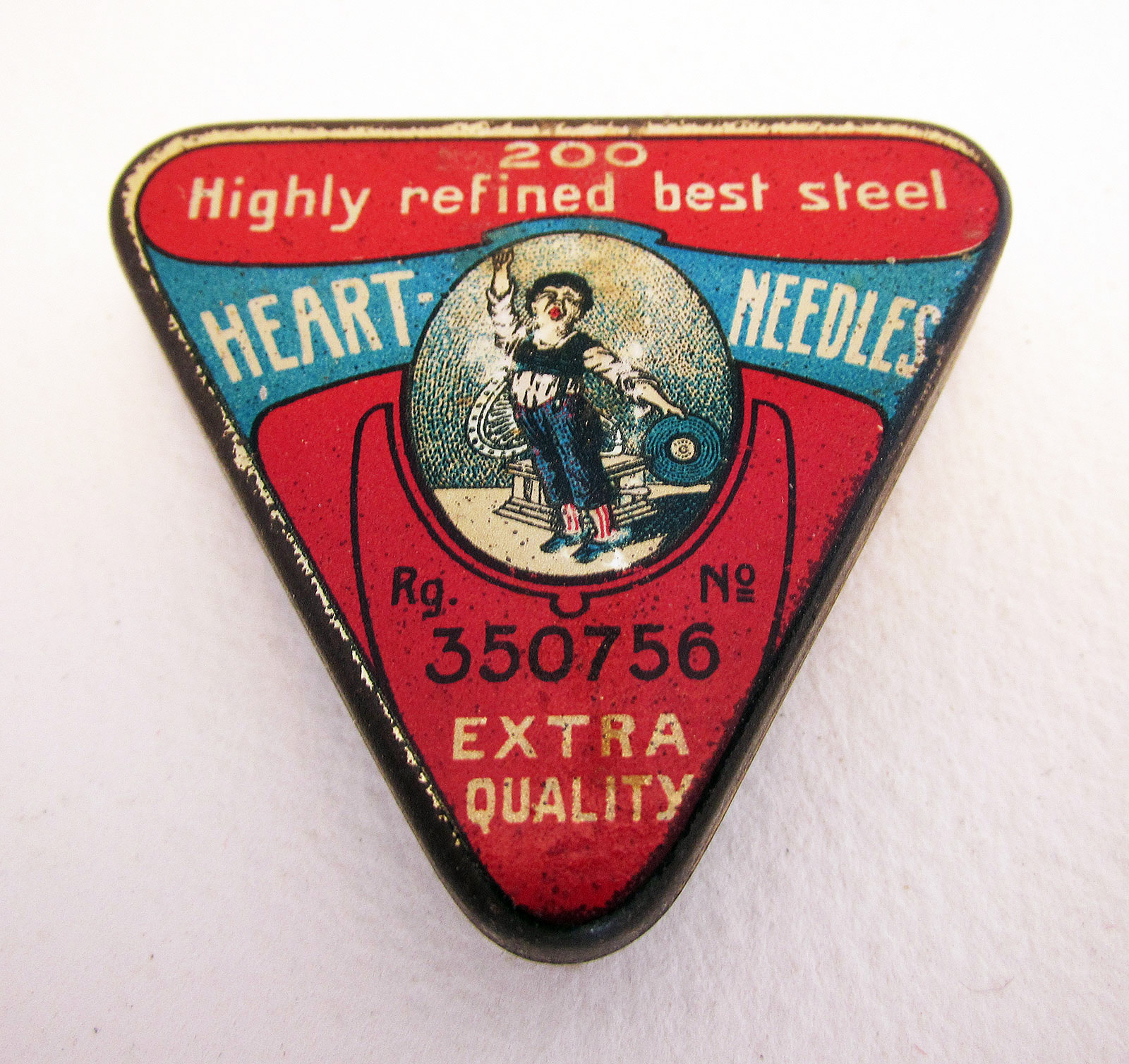 German Germany Triangular Gramophone Heart Needle Metal Tin Case Box Nadeldose c.1920