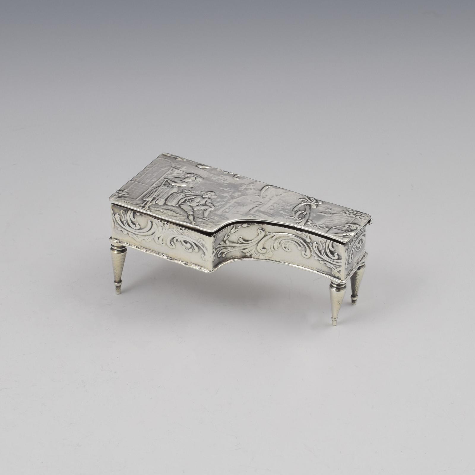 German Hanau Silver Novelty Miniature Harpsichord Embossed Trinket Box