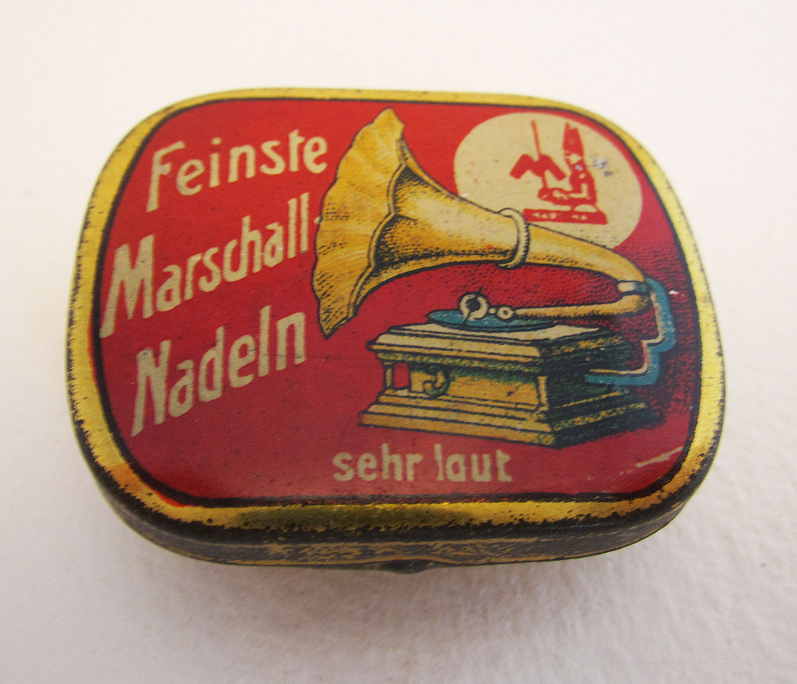 German Marschall Feinste Nadeln Sehr Laut Gramophone Needle Metal Tin Case Box. Red C.1920