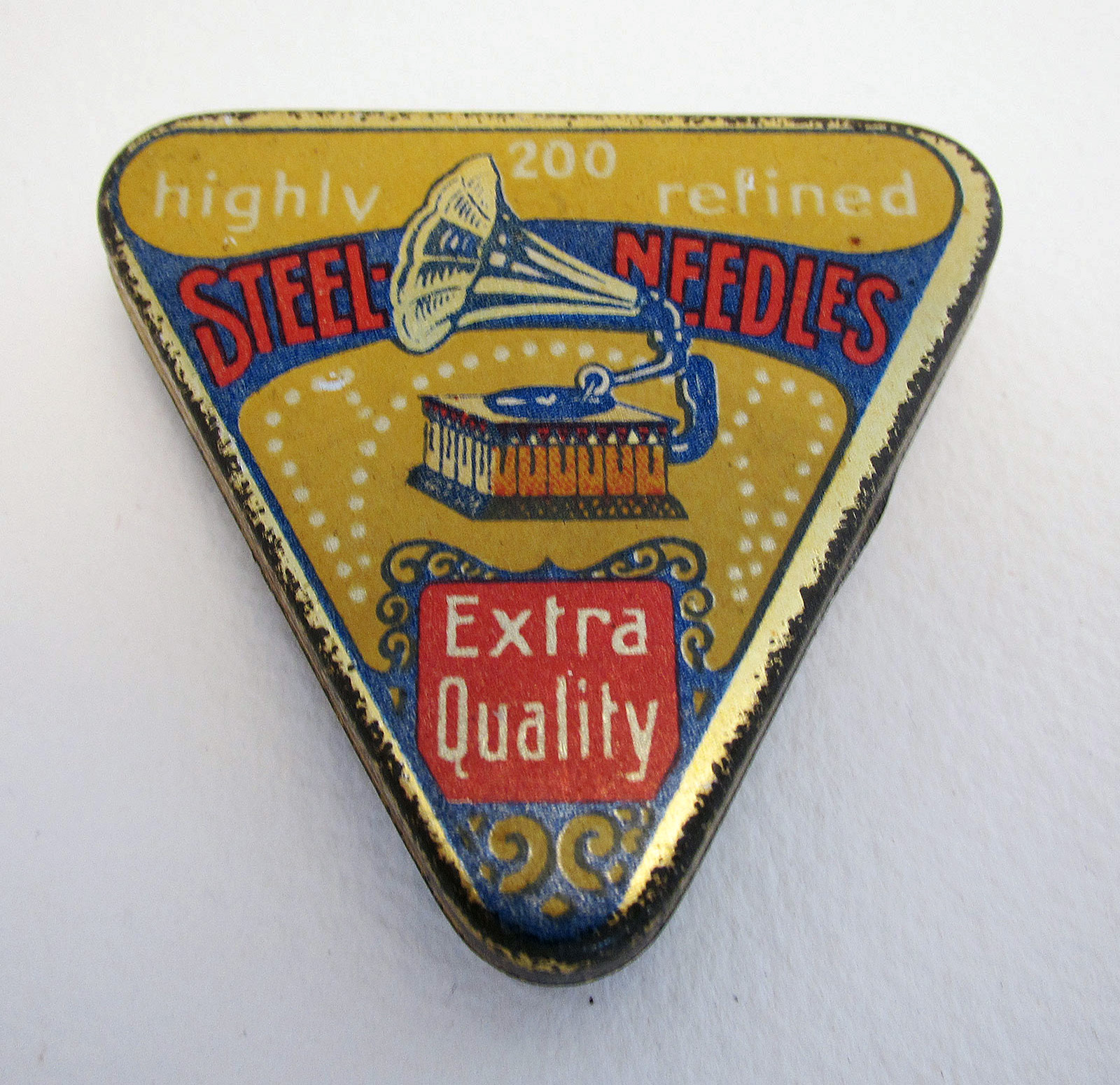 German Marschall Triangular Gramophone Needle Metal Tin Case Box Nadeldose C.1920