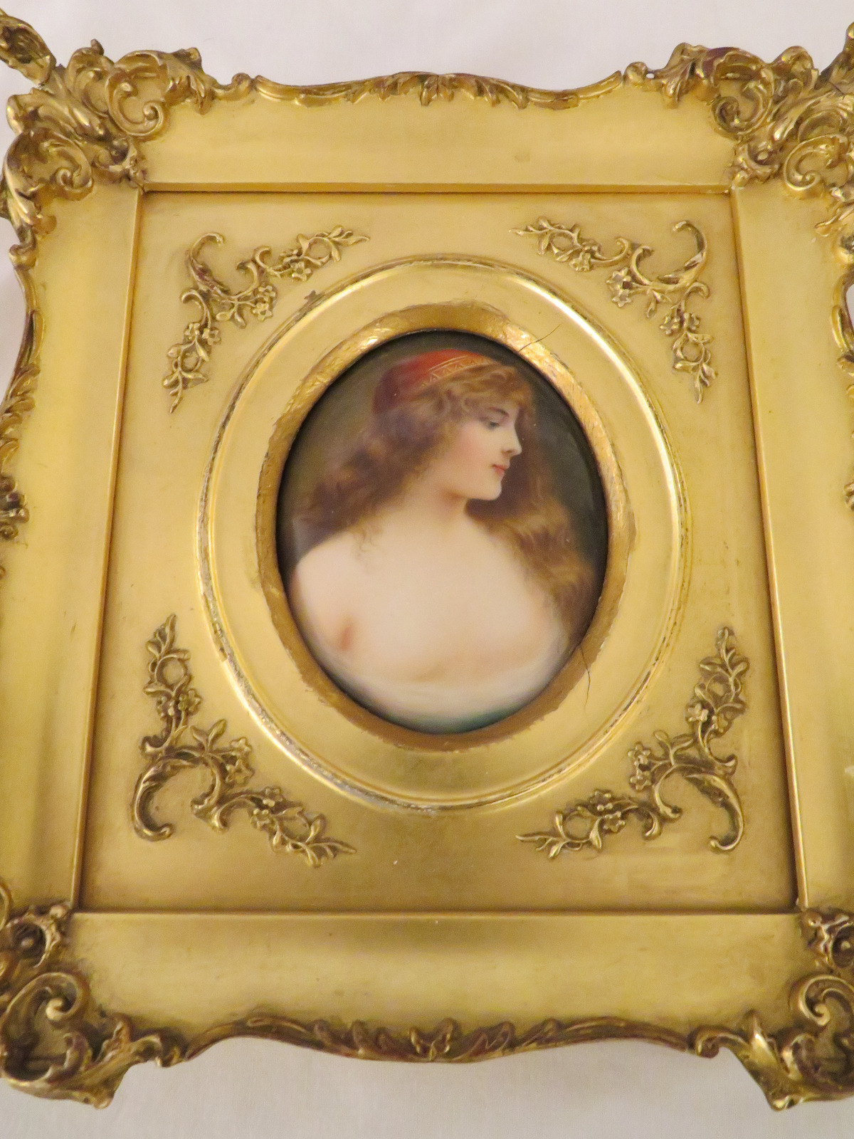German Porcelain Plaque Hutschenreuther Stamp Giltwood Frame