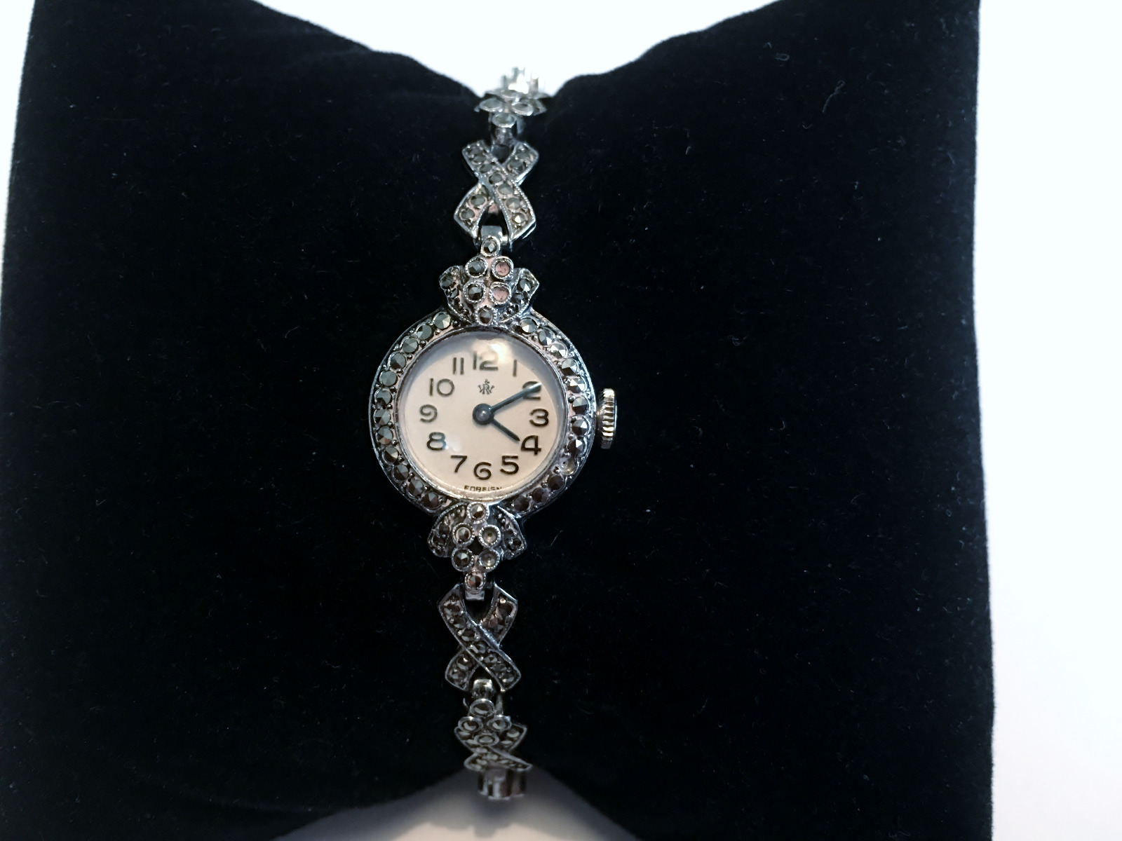 German Silver & Marcasite Ladies Cocktail Watch with London Import Marks, 1958