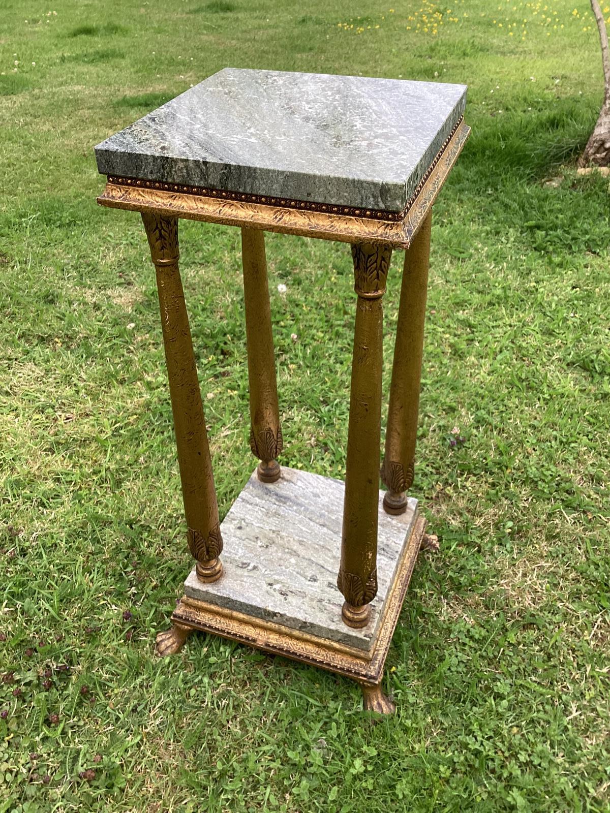 Gesso & Marble Square Pedestal Jardiniere / Plant Stand