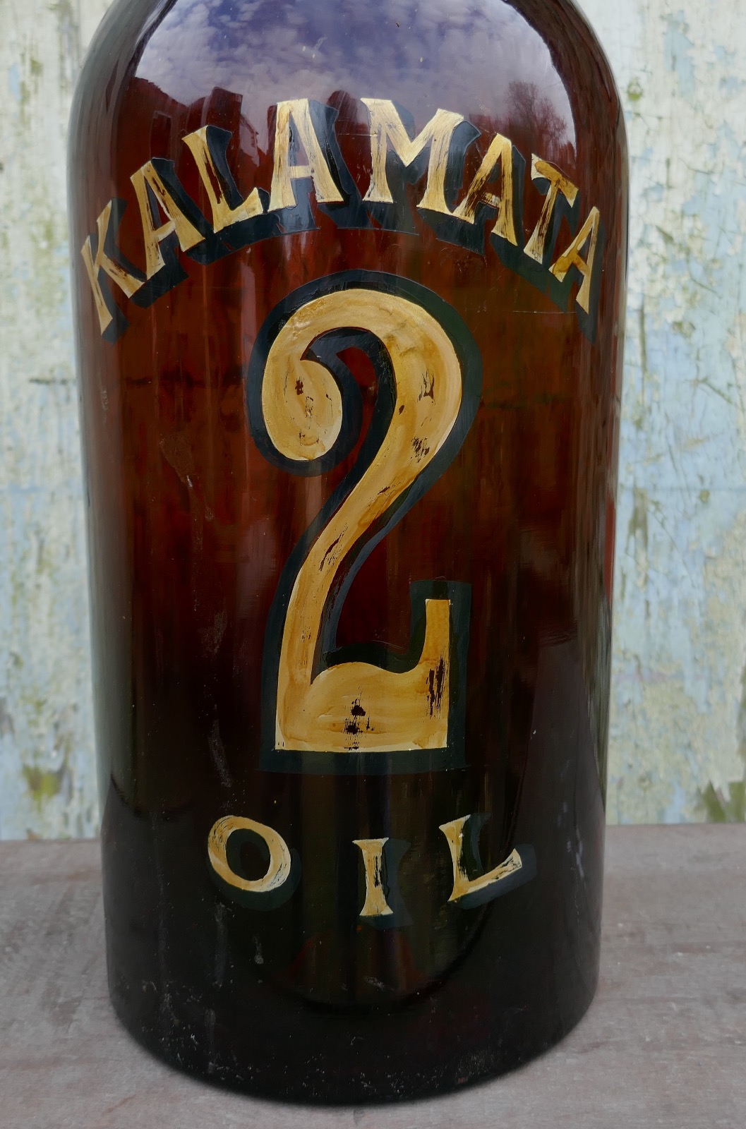 Giant 19th Century Greek Olive Oil Bottle with Gold Number & Label