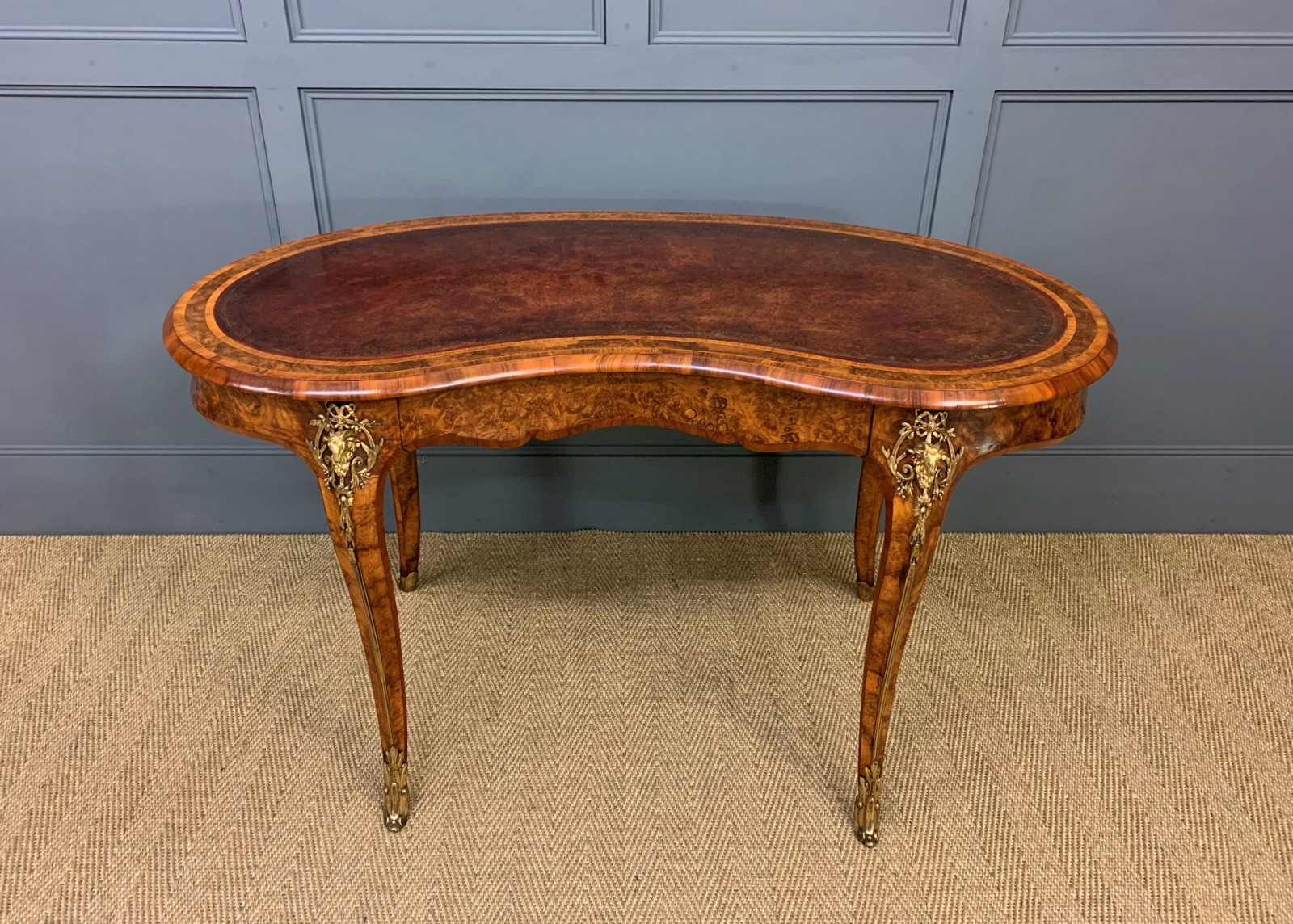 Gillows Burr Walnut Kidney Shaped Writing Table