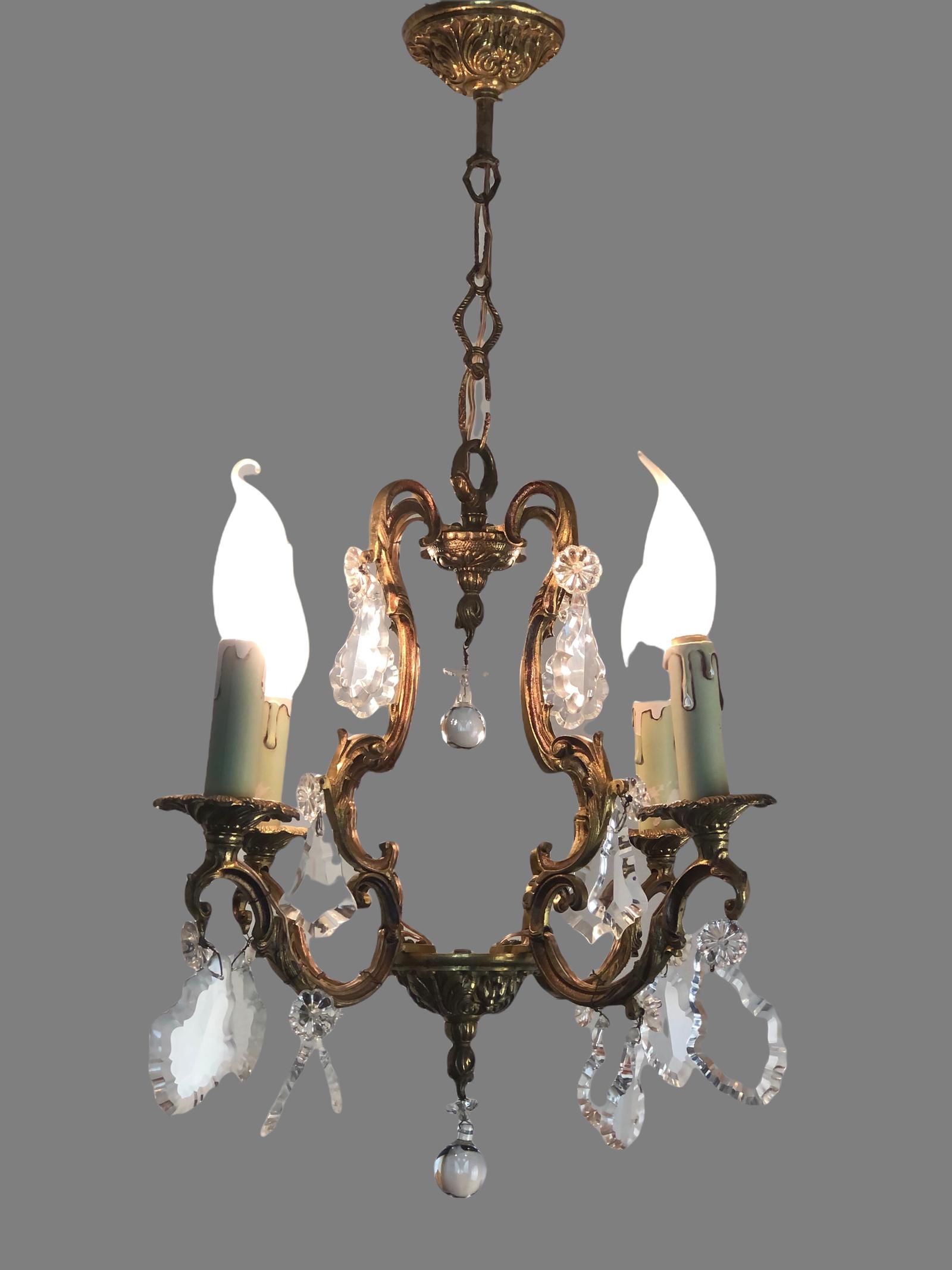 Gilt Bronze 4 Arm Chandelier Birdcage Style Ceiling Light With Glass Droplets