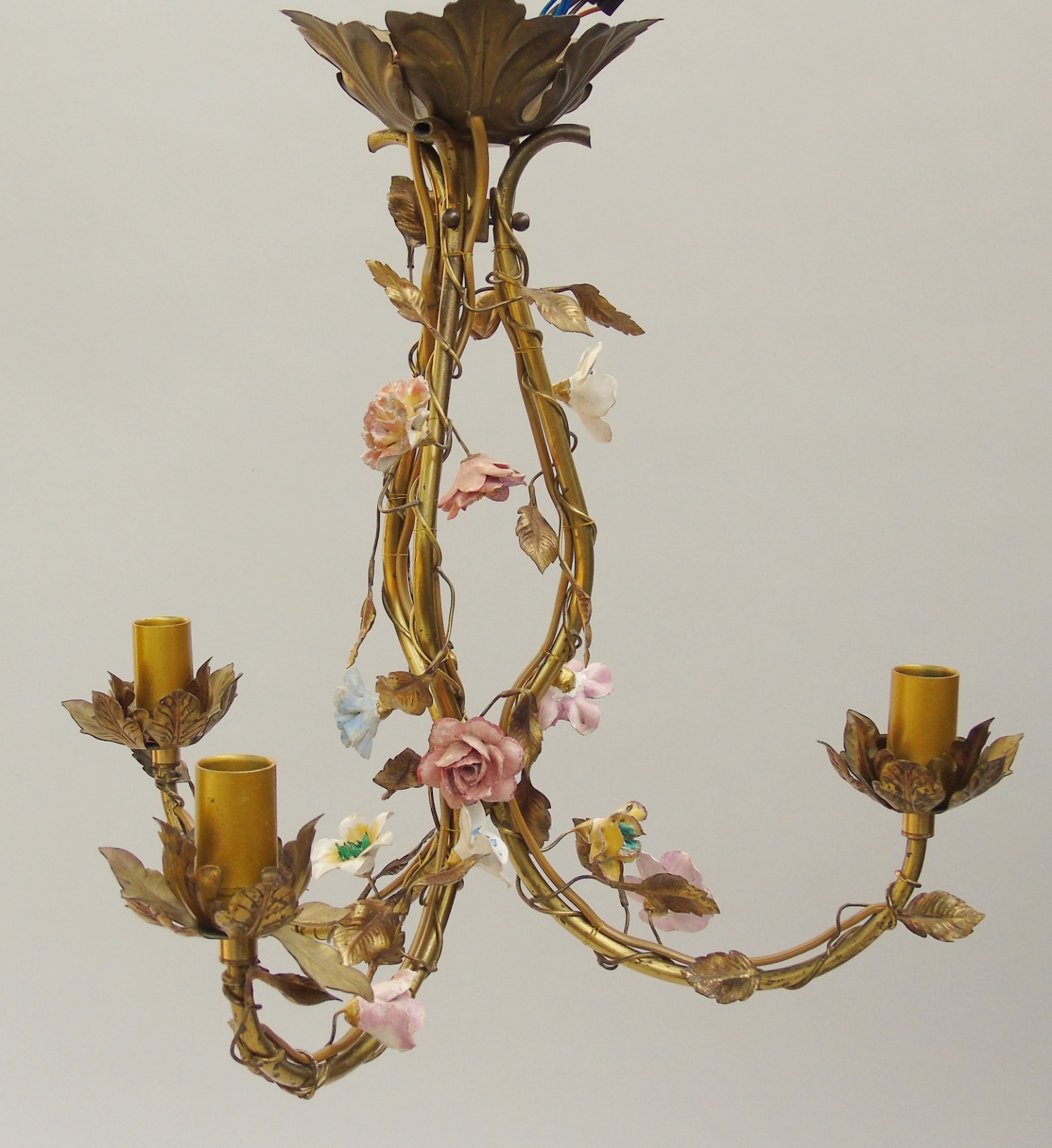 Gilt Bronze & Ceramic Floral Chandelier French C.1920 (1 of 1)