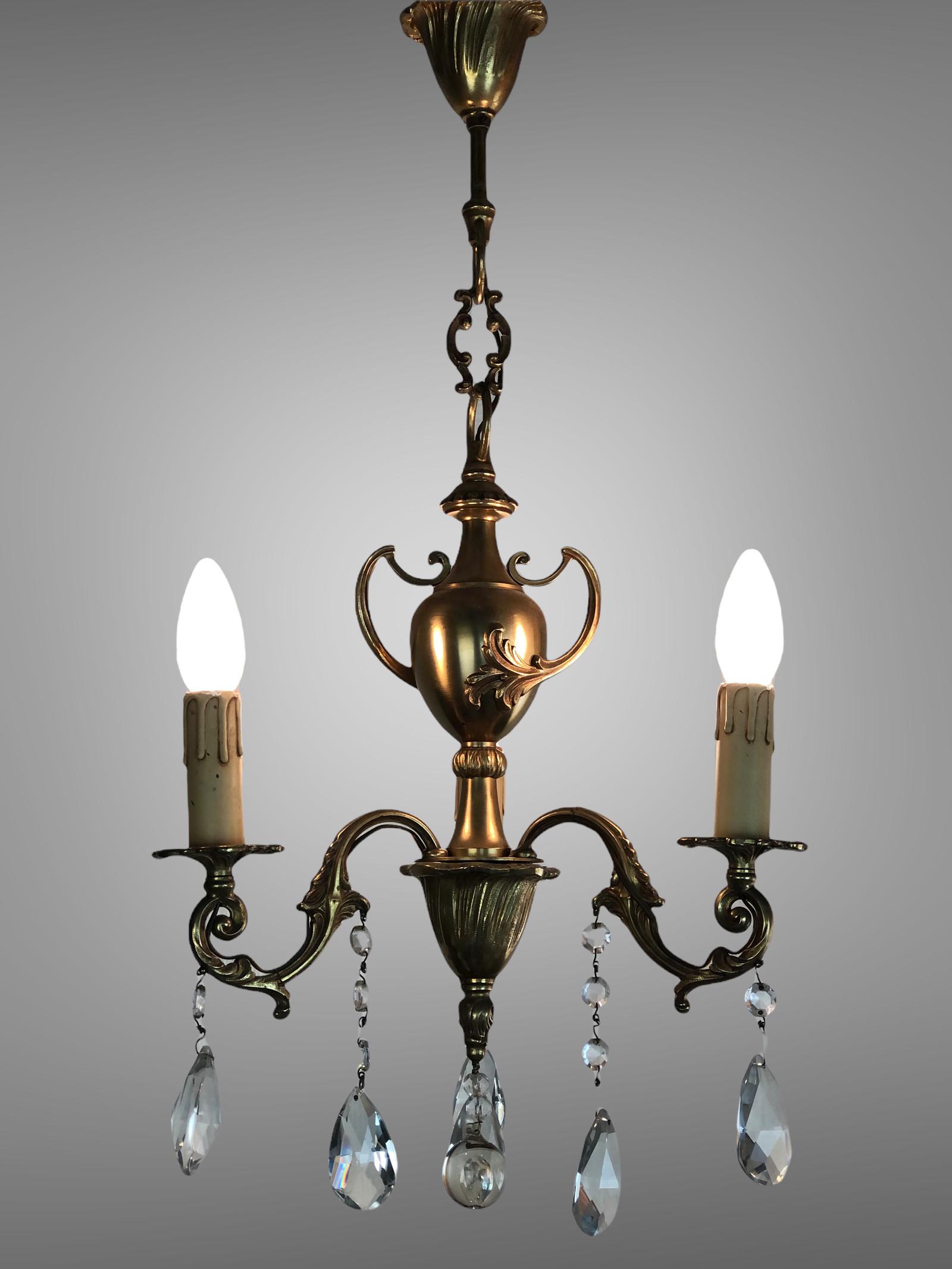 Gilt Bronze Chandelier 3 Arm Ceiling Light with Crystal Droplets