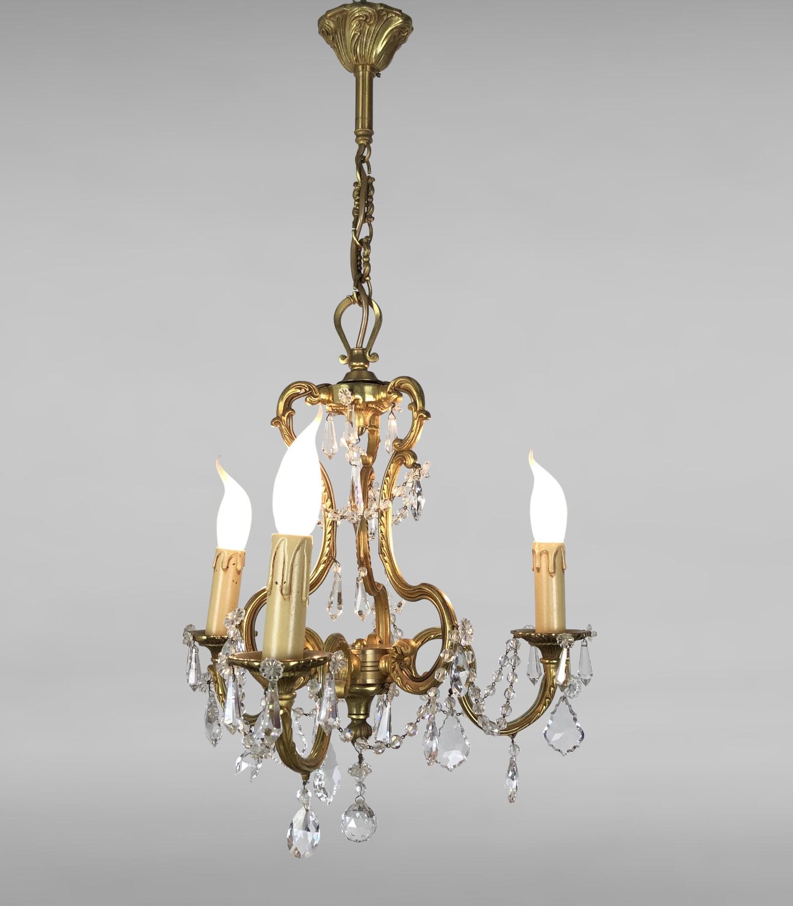 Gilt Chandelier Ceiling Light with Swags & Glass Droplets