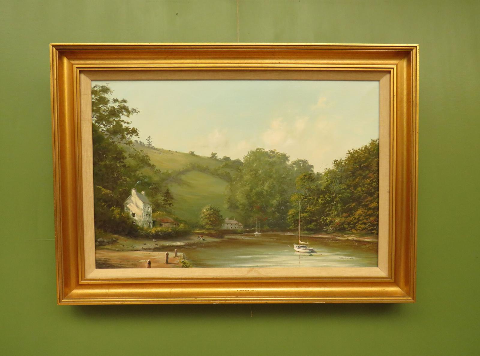 Gilt Framed Painting of Tuckenhay Quay South Devon by George Horne