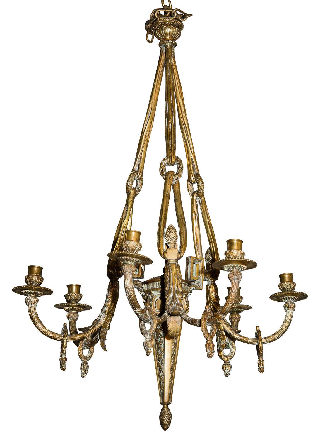 Gilt Metal Louis XVI Style Chandelier with Draping & Loop Decoration