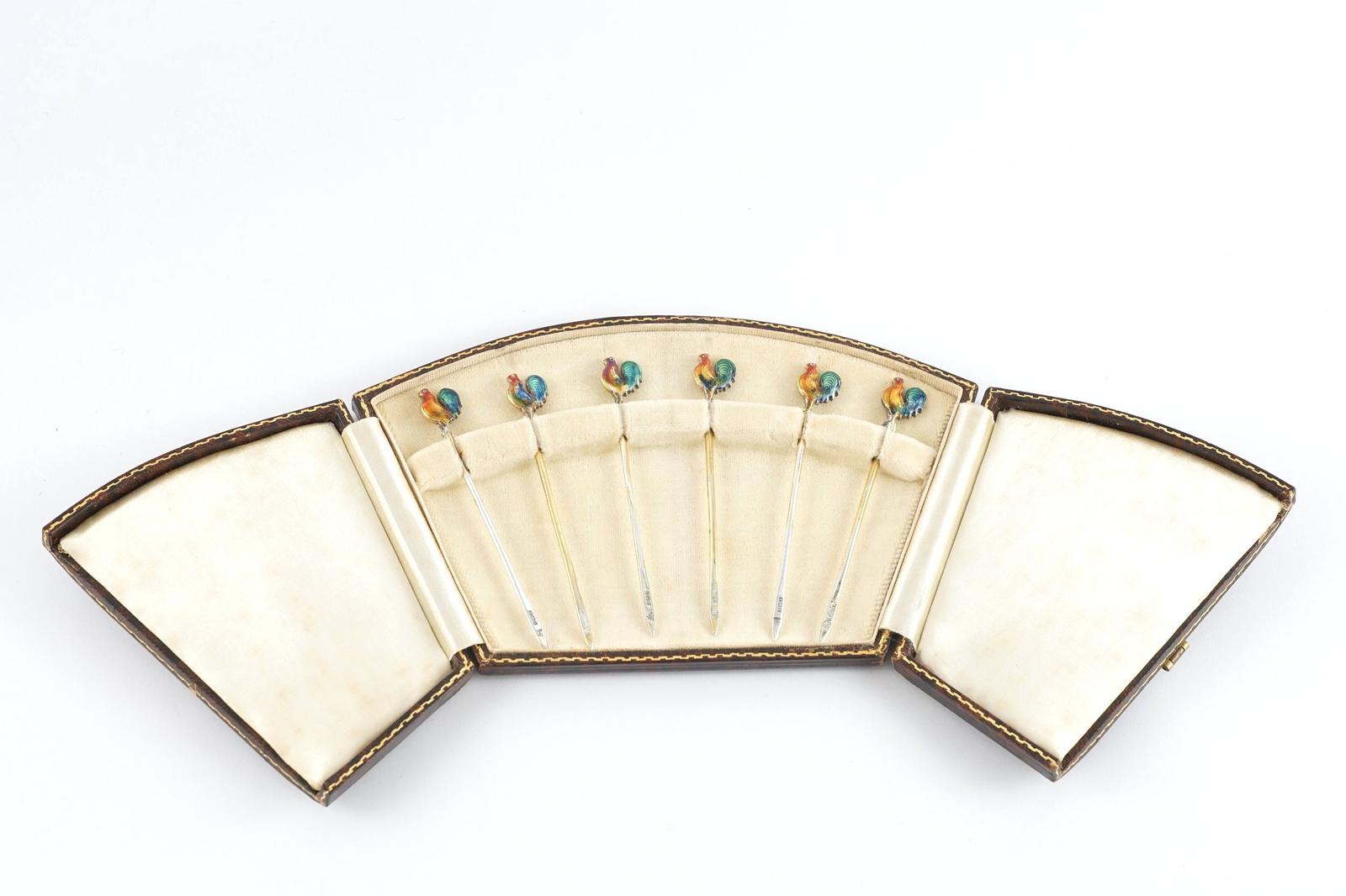 Gilt Silver Cockerel Cocktail Sticks - Adie Brothers 1937