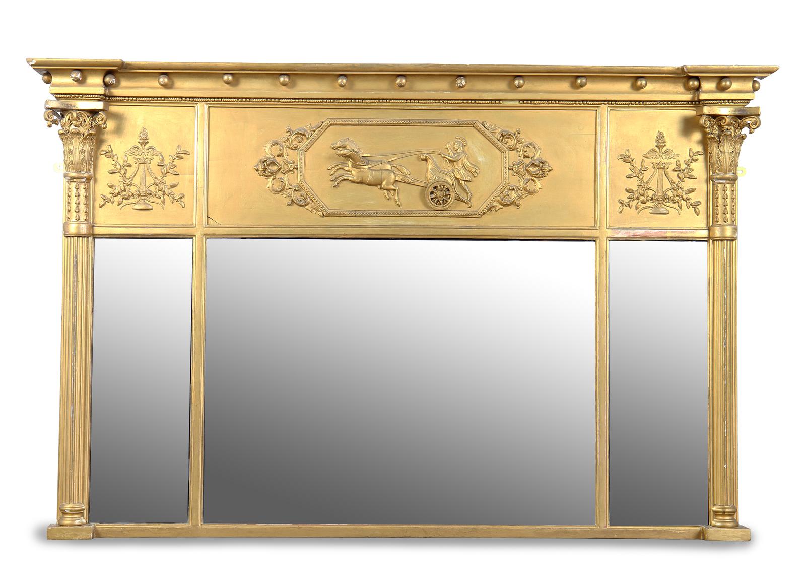 Giltwood & Gesso Three Plate Overmantle Mirror