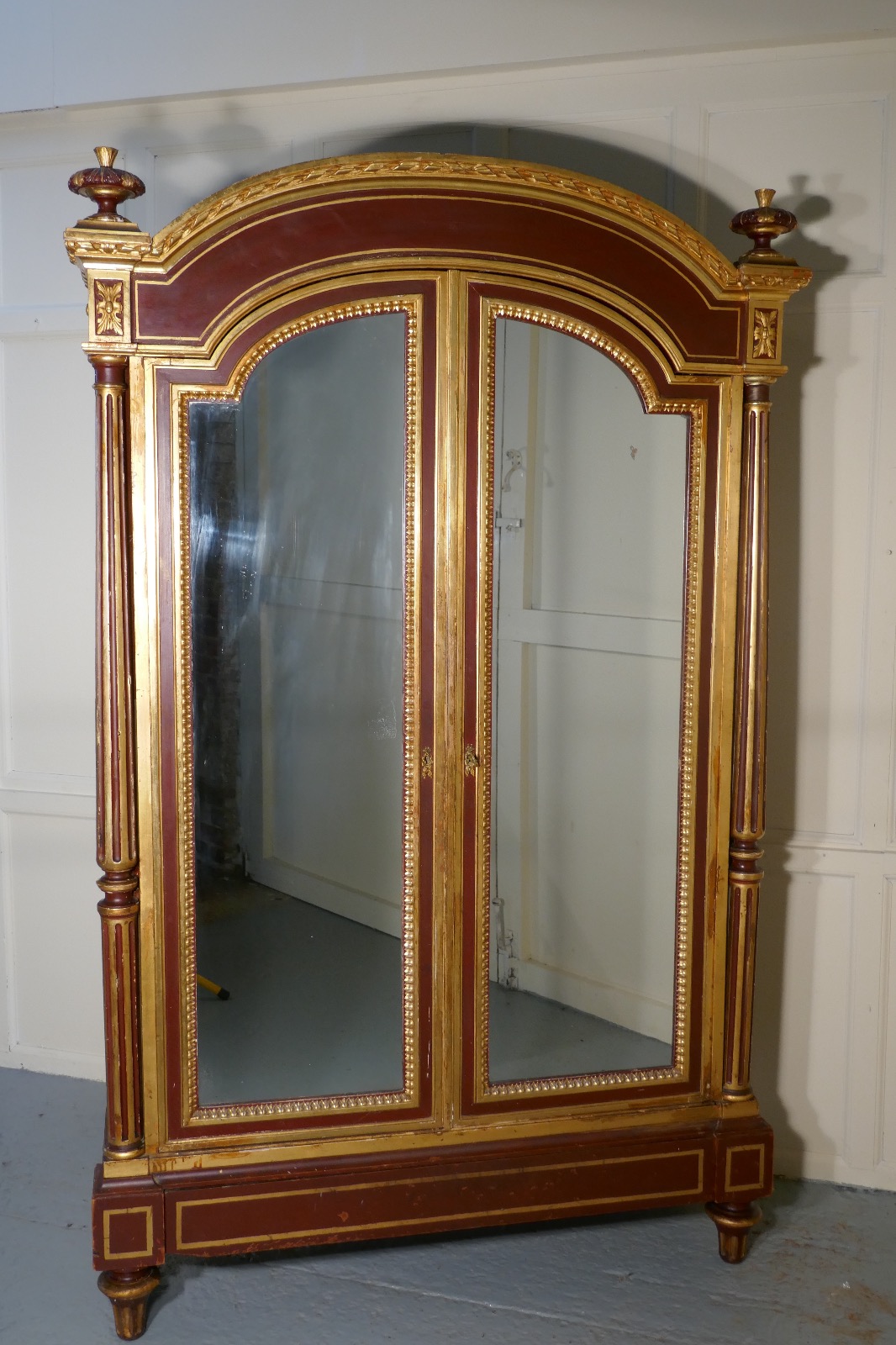 Glamorous French Art Deco Gold & Burgundy Armoire
