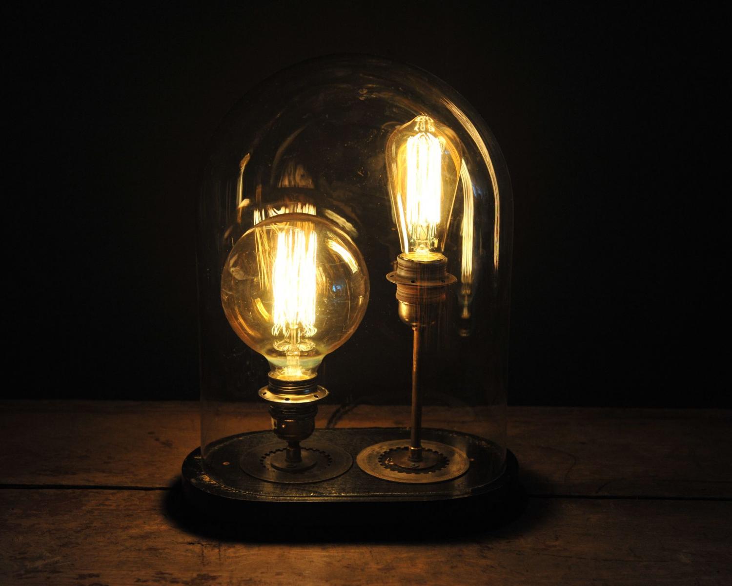 Glass globe lamp with two bulbs