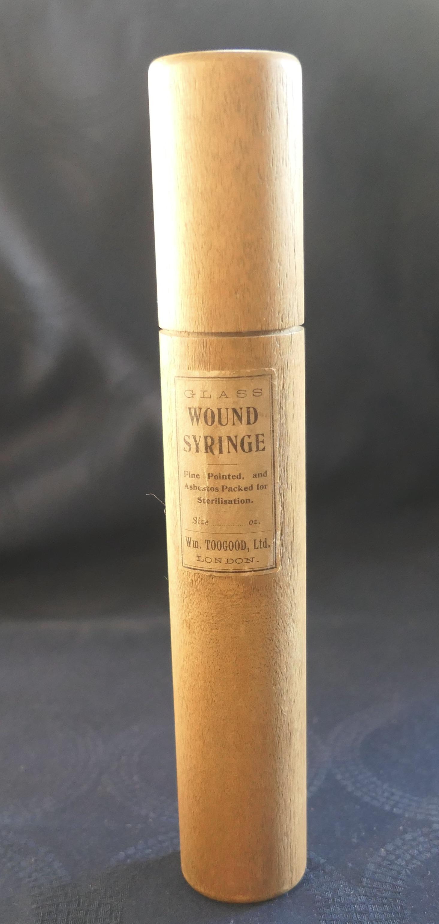 Glass Pharmacy Wound Syringe in Beech Case by W.M Toogood Ltd