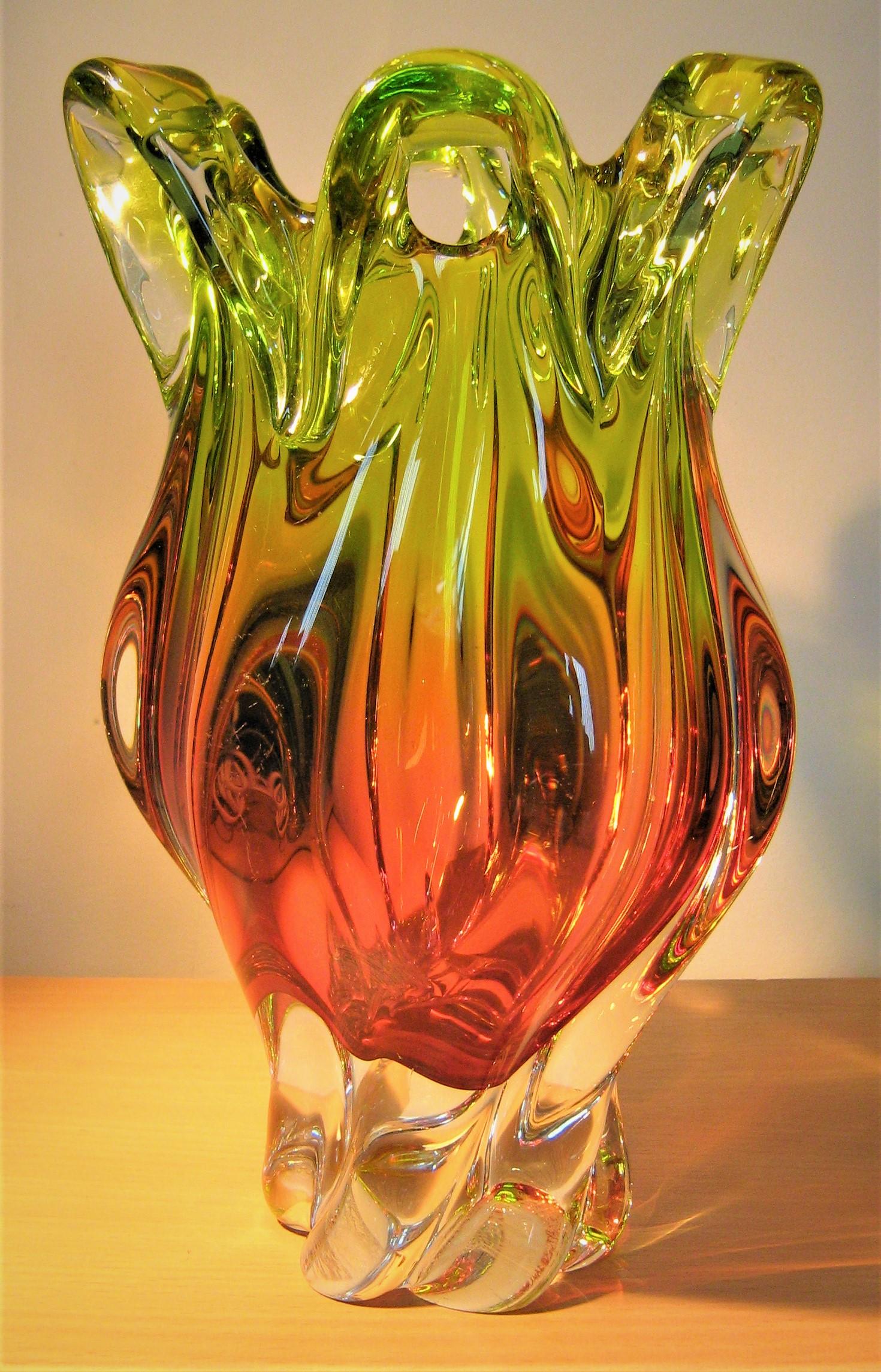 Glass Vase: Stunning 1960 Bohemian Style Glass Vase by Renown Designer Josef Hospodka