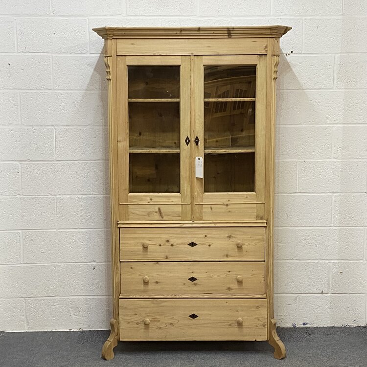 Glazed Antique Pine Cabinet with Chest of Drawers
