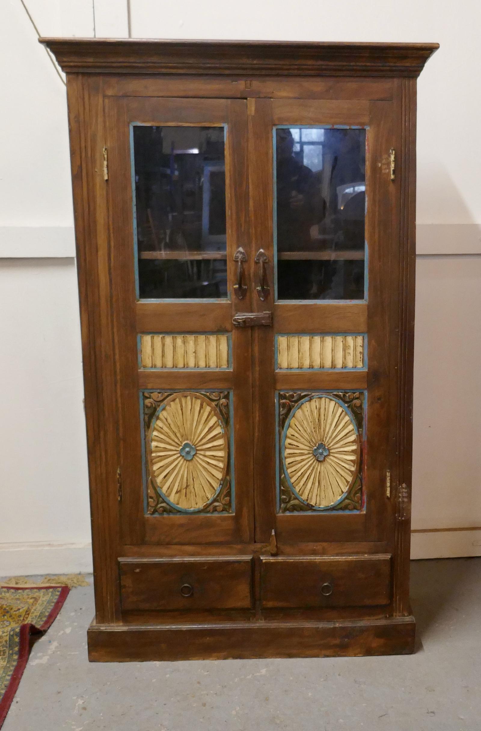 Glazed Folk Art Carved 2 Door Cupboard