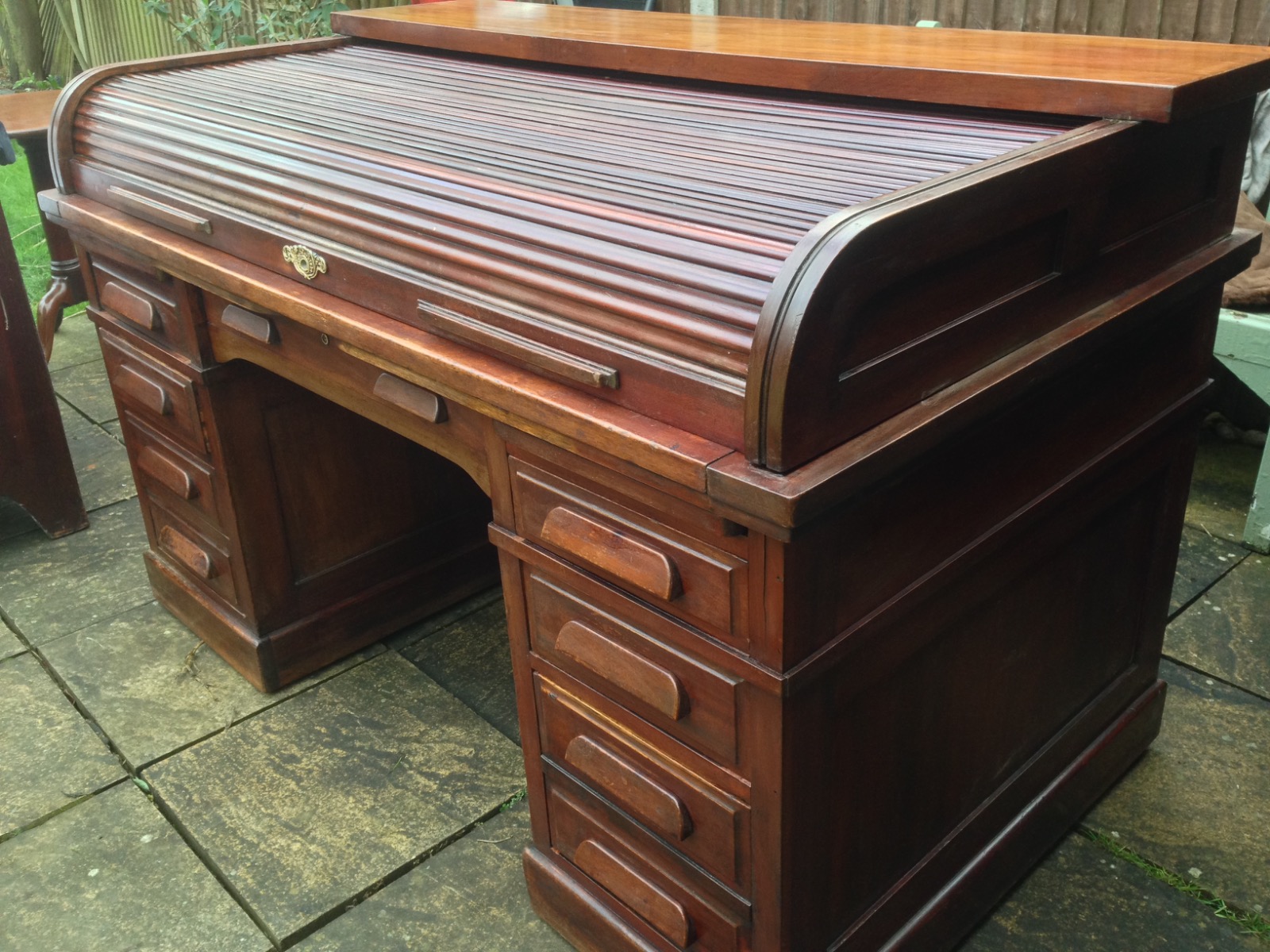 Globe Wernicke Solid Mahogany Roll-Top Tambour Pedestal Desk c.1920
