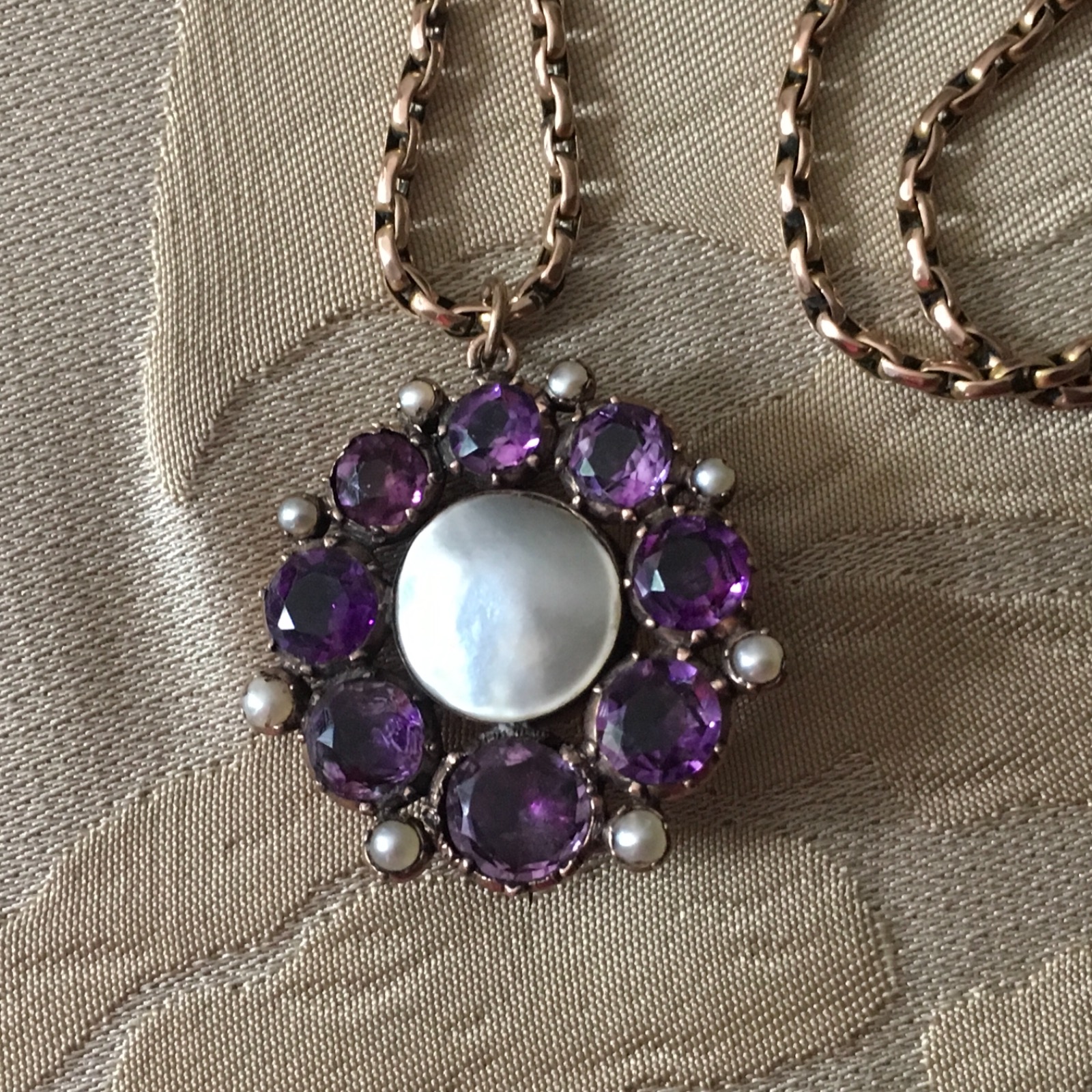 Gold, Amethyst & Pearl Pendant & Chain - Victorian