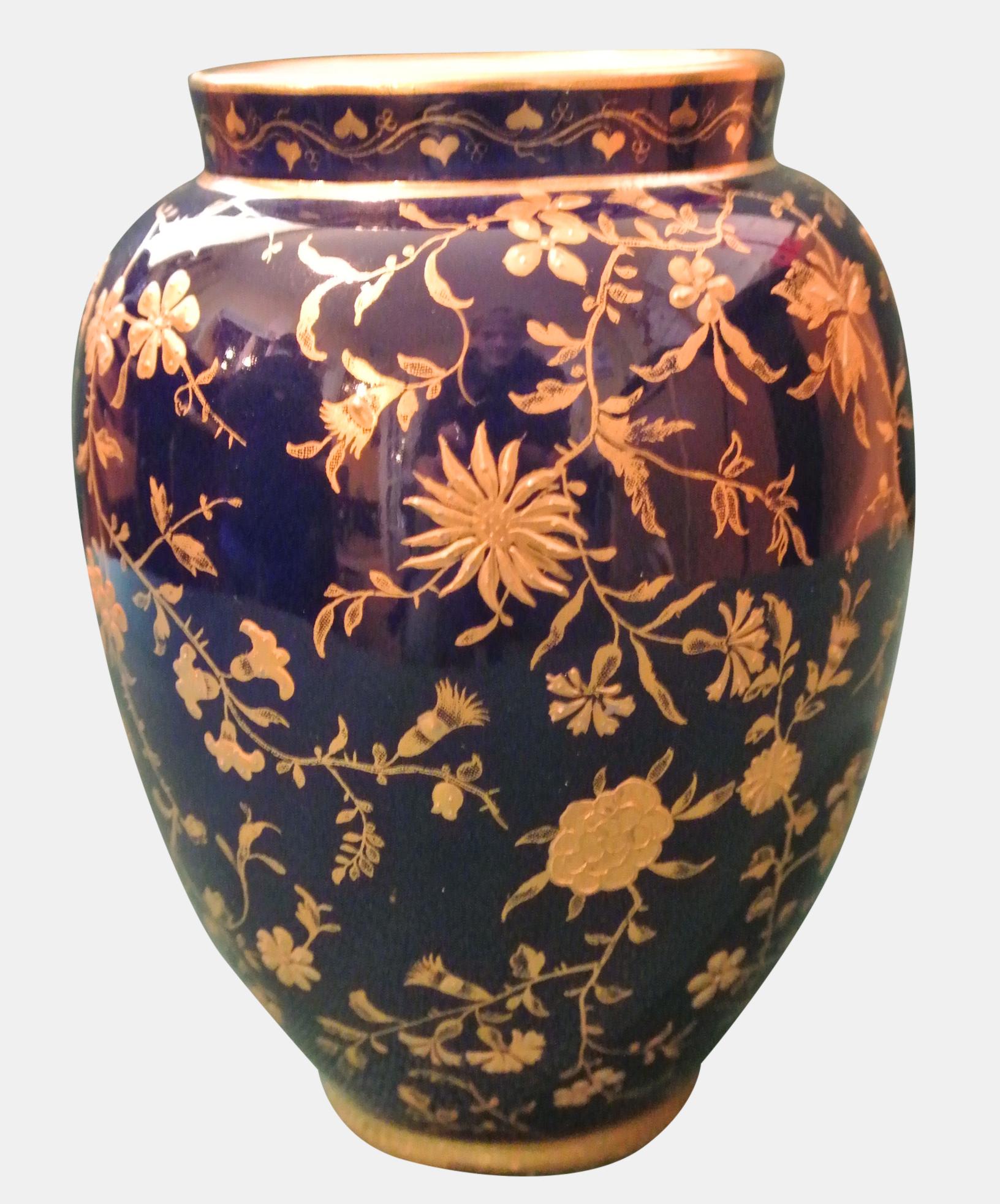 Gold Covered Blue Minton Vase (1 of 1)