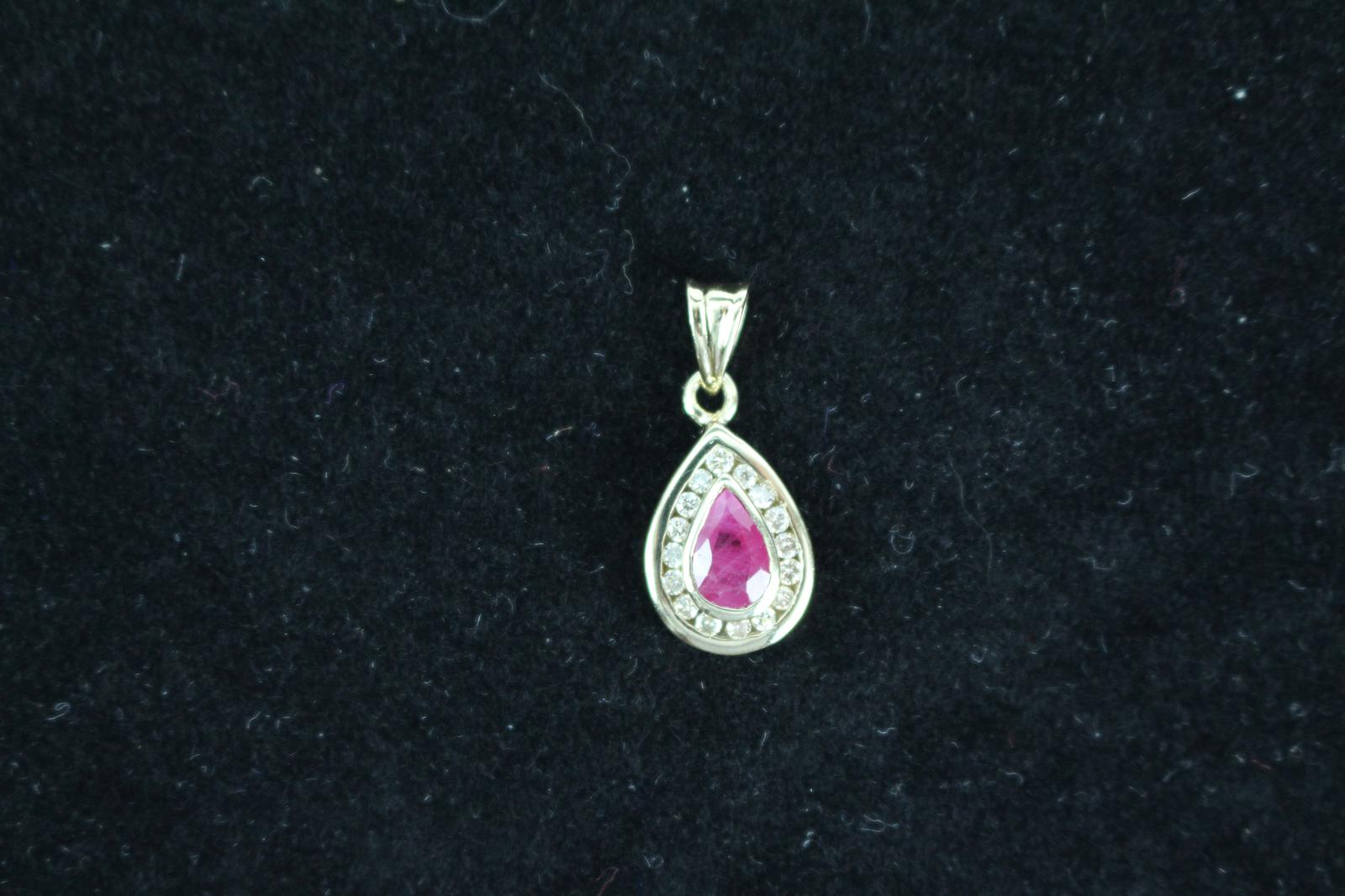 Gold mounted ruby and diamond pendant
