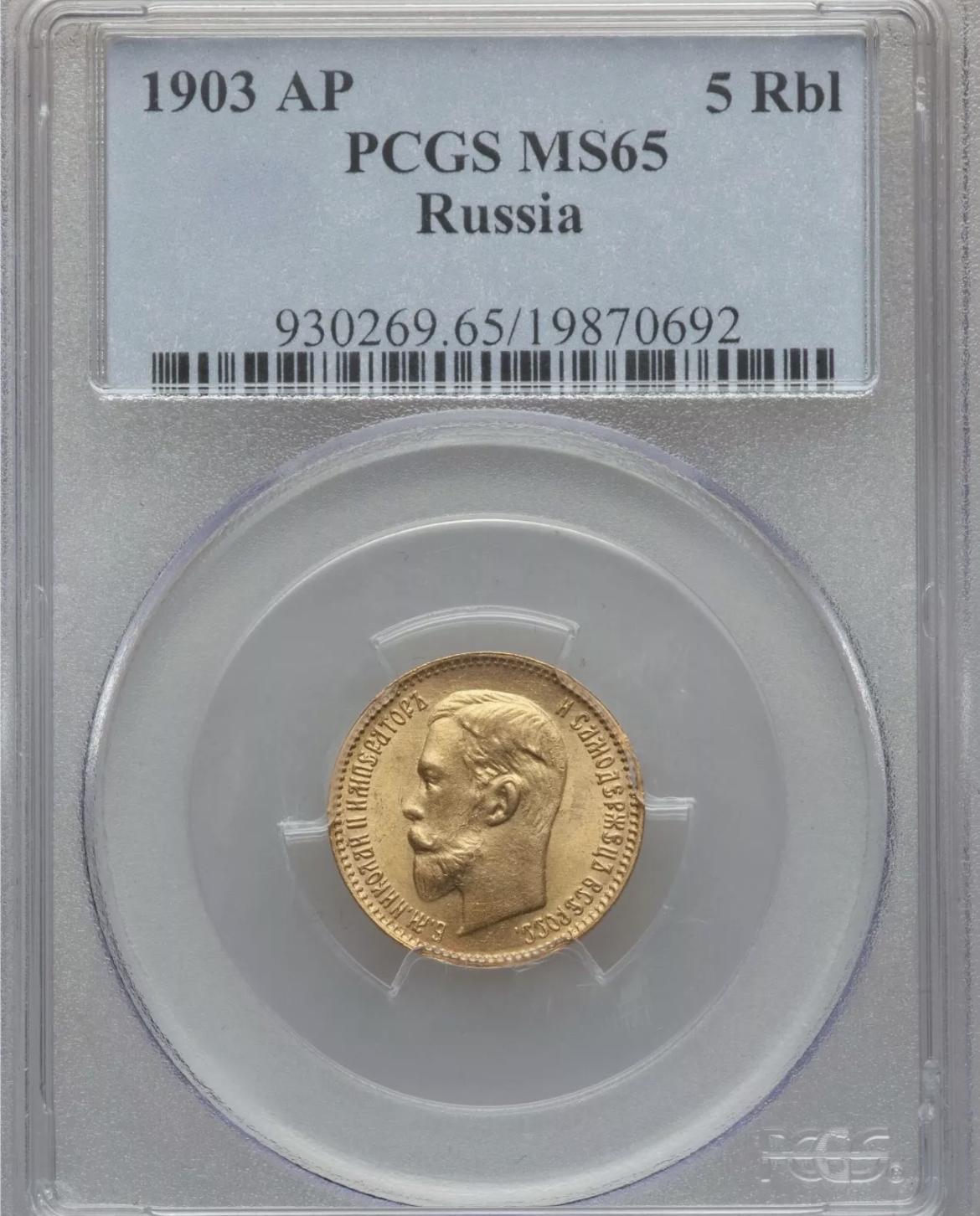 Gold Nicholas II 5 Roubles 1903-ap Ms65 Pcgs, Km-y64