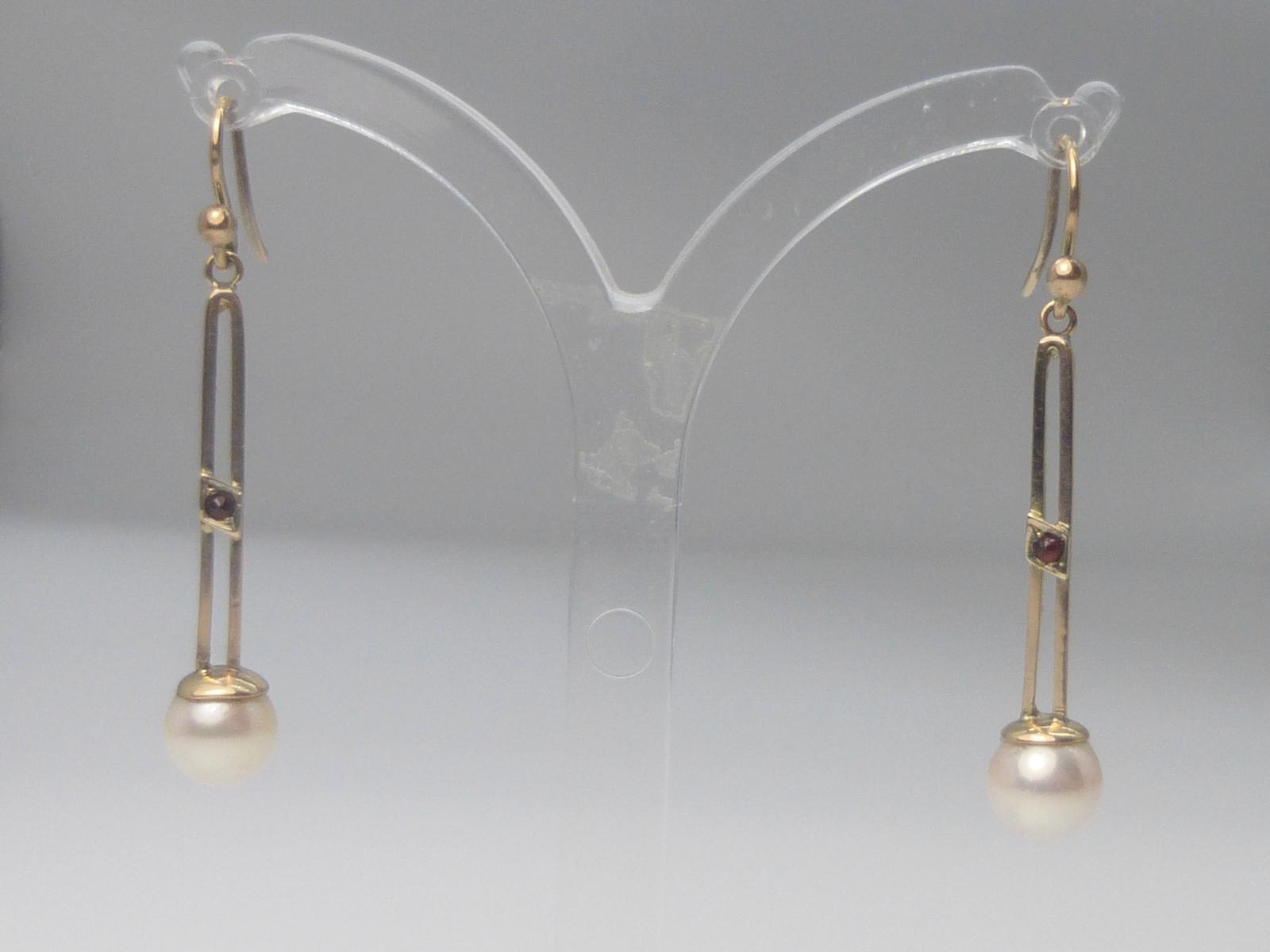 Gold Pearl & Garnet Drop Earrings