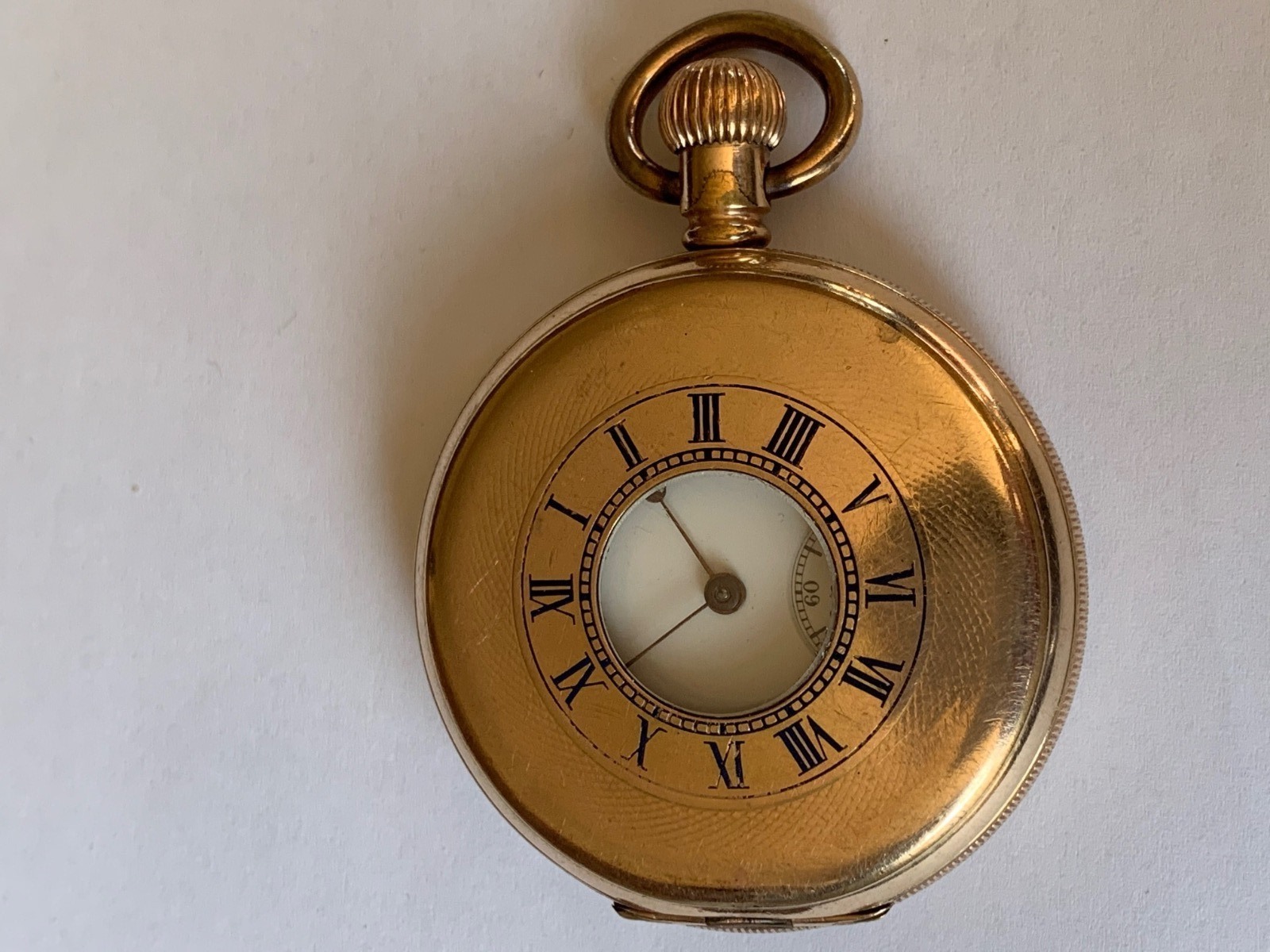 Gold Plated Waltham Crown Wind Half Hunter Pocket Watch