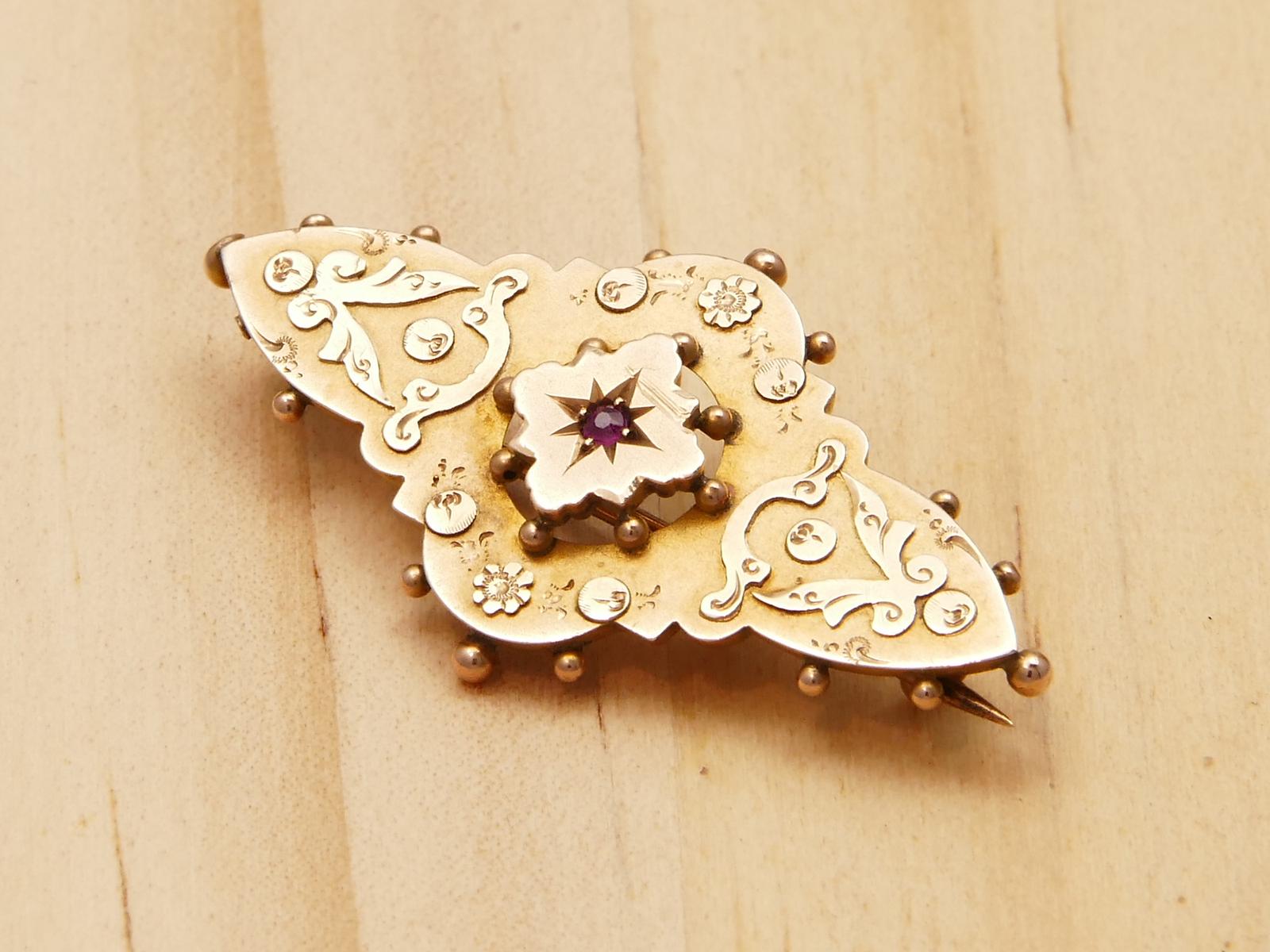 Gold Ruby Floral Brooch Hallmarked 1902 Sydenham Brothers