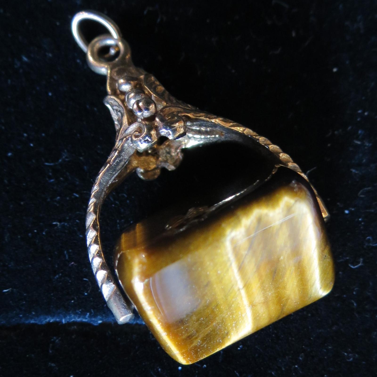 Gold Triangular Tiger’s Eye Spinner Pendant/Fob (1 of 5)