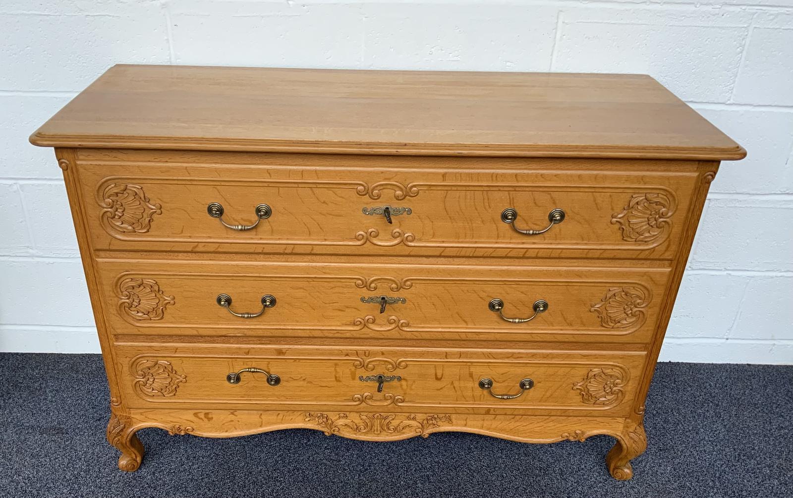 CARVED OAK FRENCH CHEST OF DRAWERS