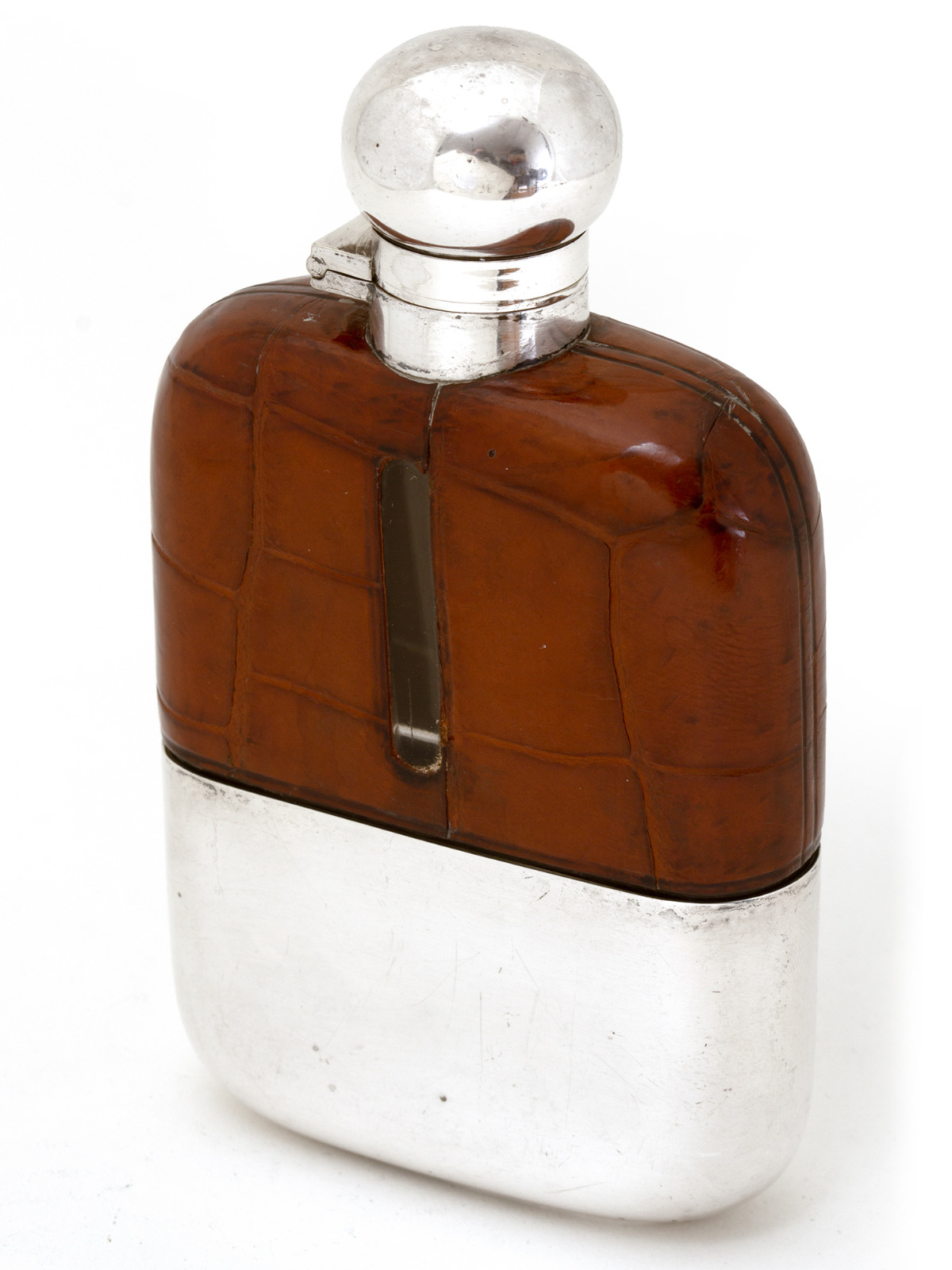 Goldsmith & Silversmith Silver Plated Crocodile Leather and Glass Flask