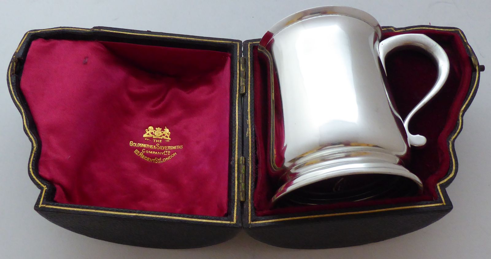 Goldsmiths & Silversmiths Boxed Hallmarked Solid Silver Christening Mug Tankard