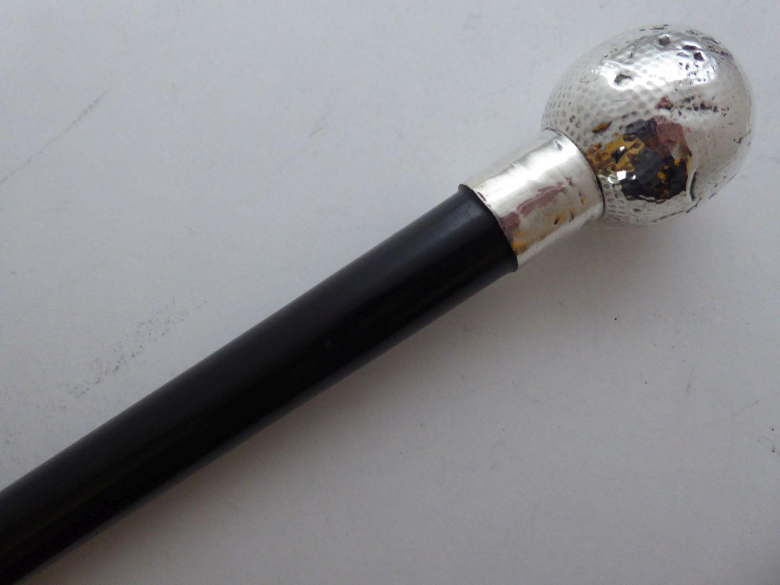 Golf Ball Walking Stick Cane 1915 Hallmarked Solid Silver Pommel Ebony Shaft