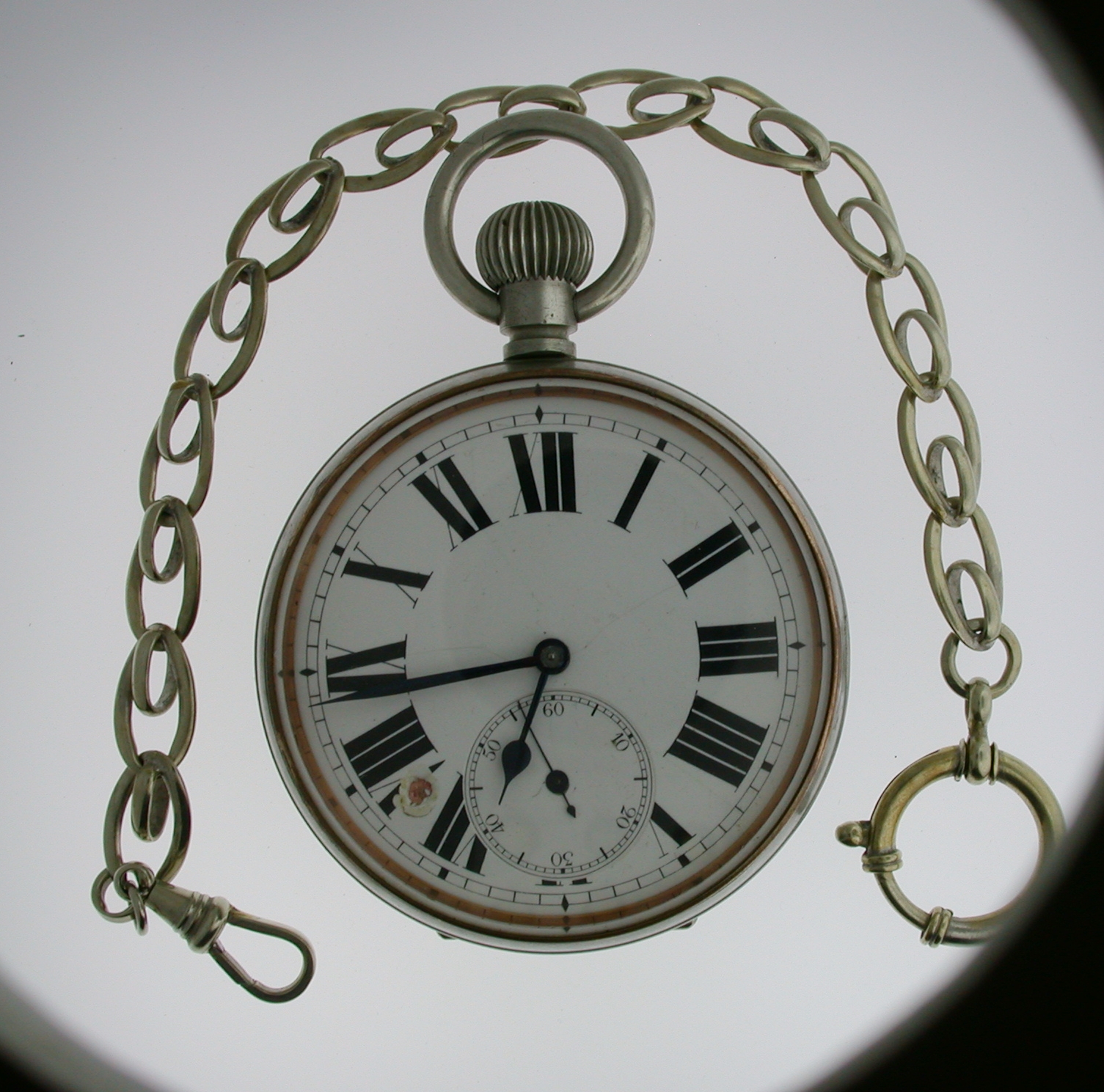 Goliath 8-Day Steel Pocket Watch Swiss 1920 with Chain (1 of 1)