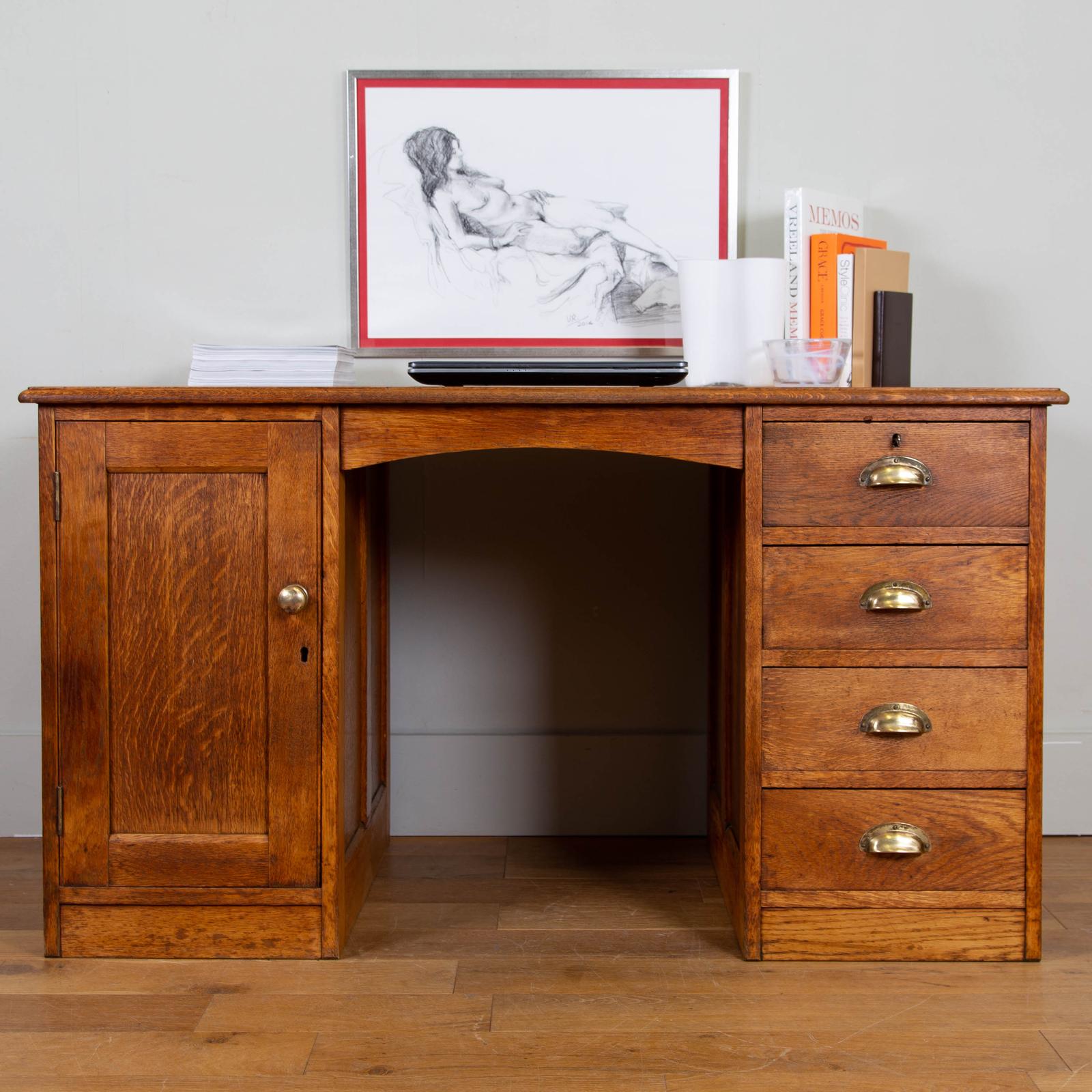Good 1930s Vintage Wake and Dean Twin Pedestal Oak Desk (1 of 13)